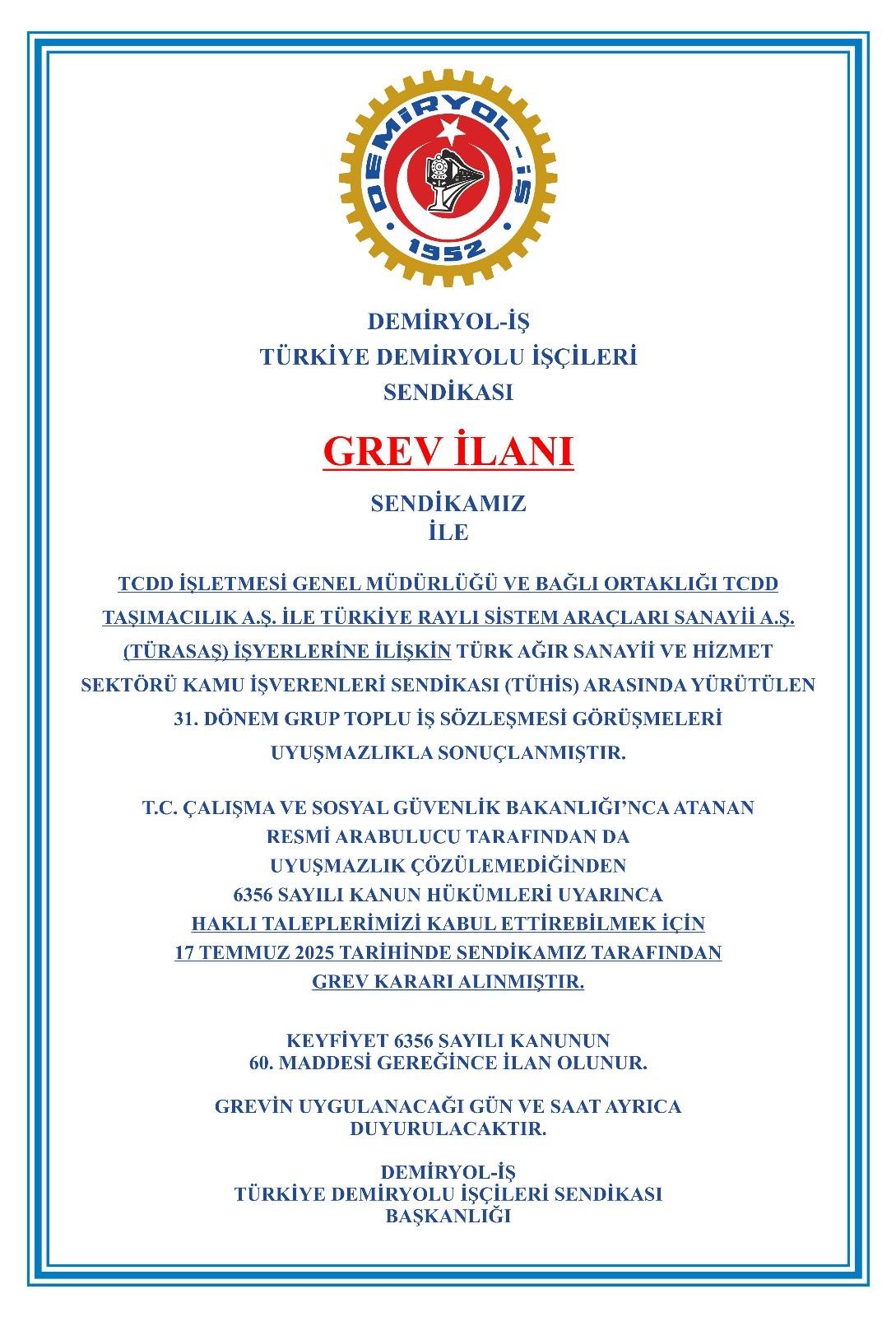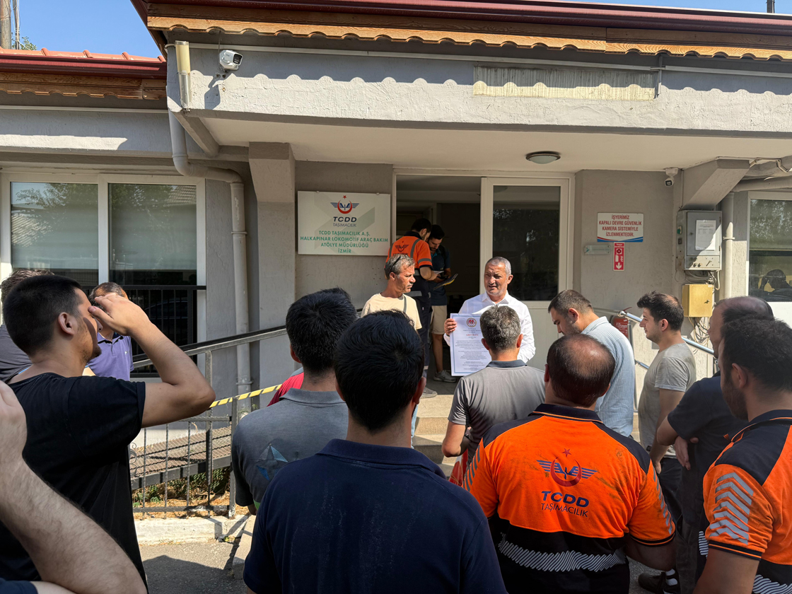 Sendikanın İzmir Şube yöneticileri grev kararını bugün Halkapınar’daki atölyelere, başta Alsancak ve Basmane olmak üzere tren istasyonlarına astı.