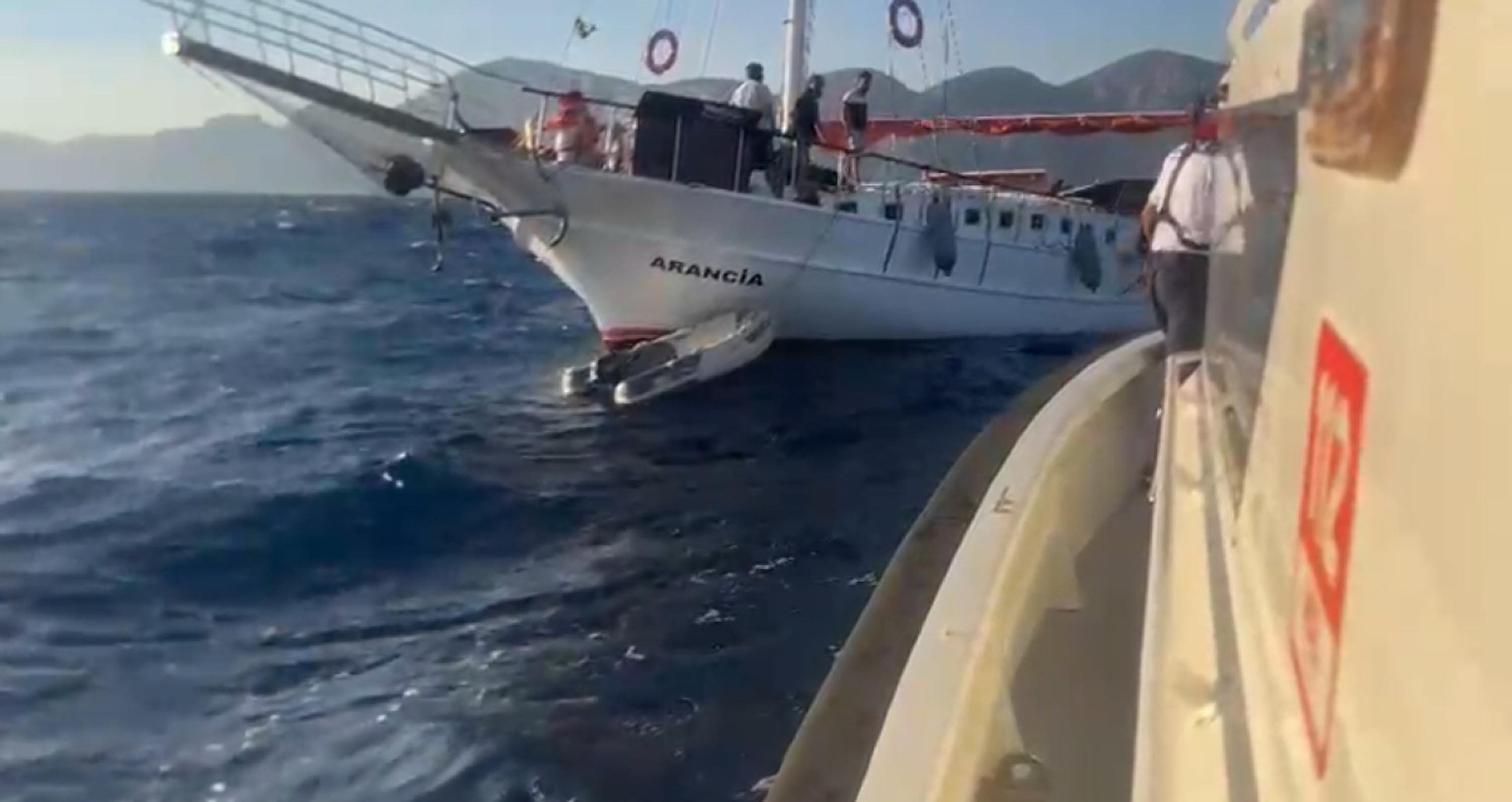 Sahil Güvenlik Komutanlığı ekipleri, 20 Ağustos saat 18.19’da Ören açıklarında içerisinde 12 kişinin bulunduğu yelkenli teknenin su aldığı ve batma tehlikesi geçirdiği bilgisi üzerine harekete geçti. Bölgeye ulaşan ekipler, yelkenli tekne içerisinden bulunan 12 kişiyi kurtararak, Ören Gökova Marina'ya getirdi. (DHA)