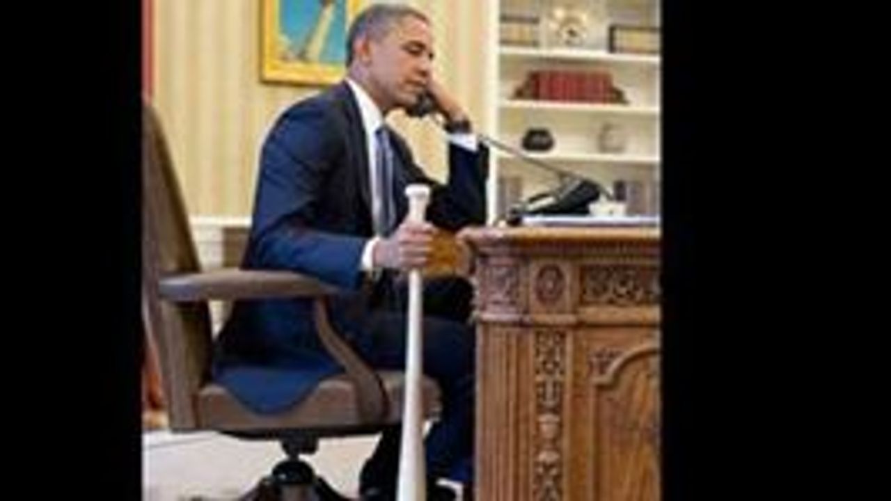 Obama'yı elinde bir beyzbol sopası tutarken gösteren bu fotoğraf, Washington'da günün tartışma konusu oldu.