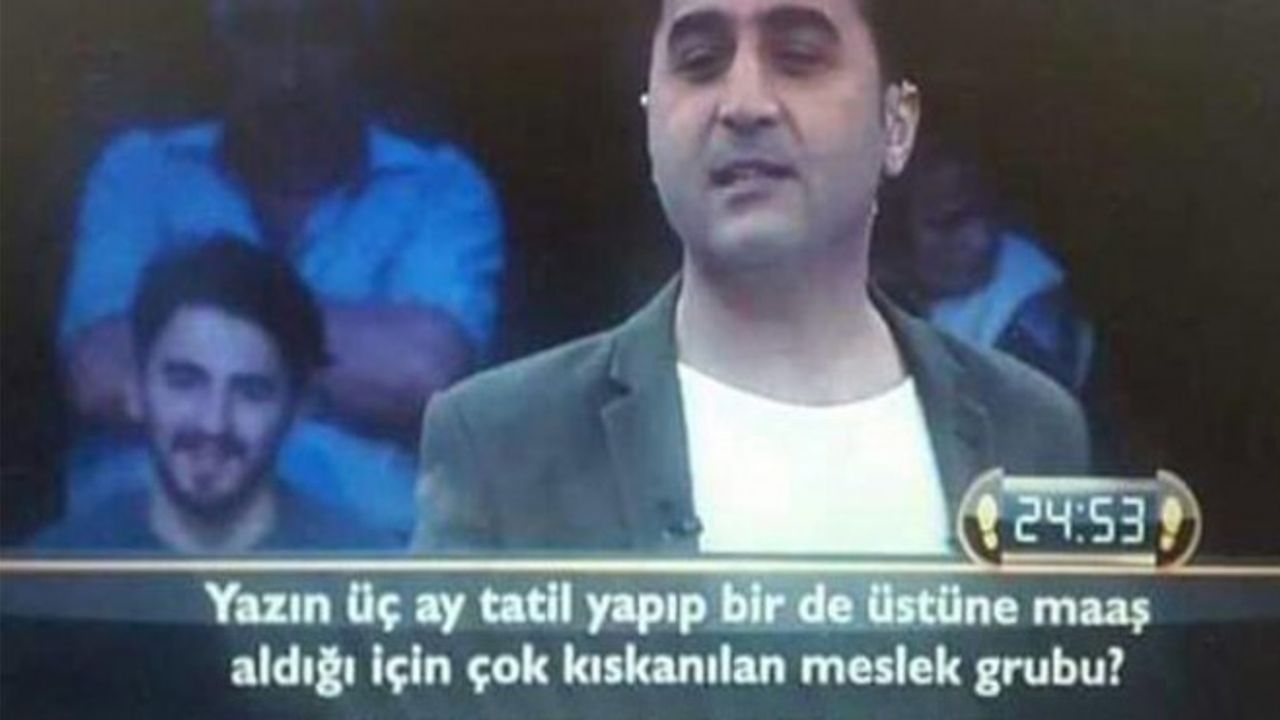 Soruda, 'Yazın üç ay tatil yapıp bir üstüne maaş aldığı için çok kıskanılan meslek grubu' ifadeleri kullanılırken gelen tepkilerin ardından Onur Buldu özür diledi.