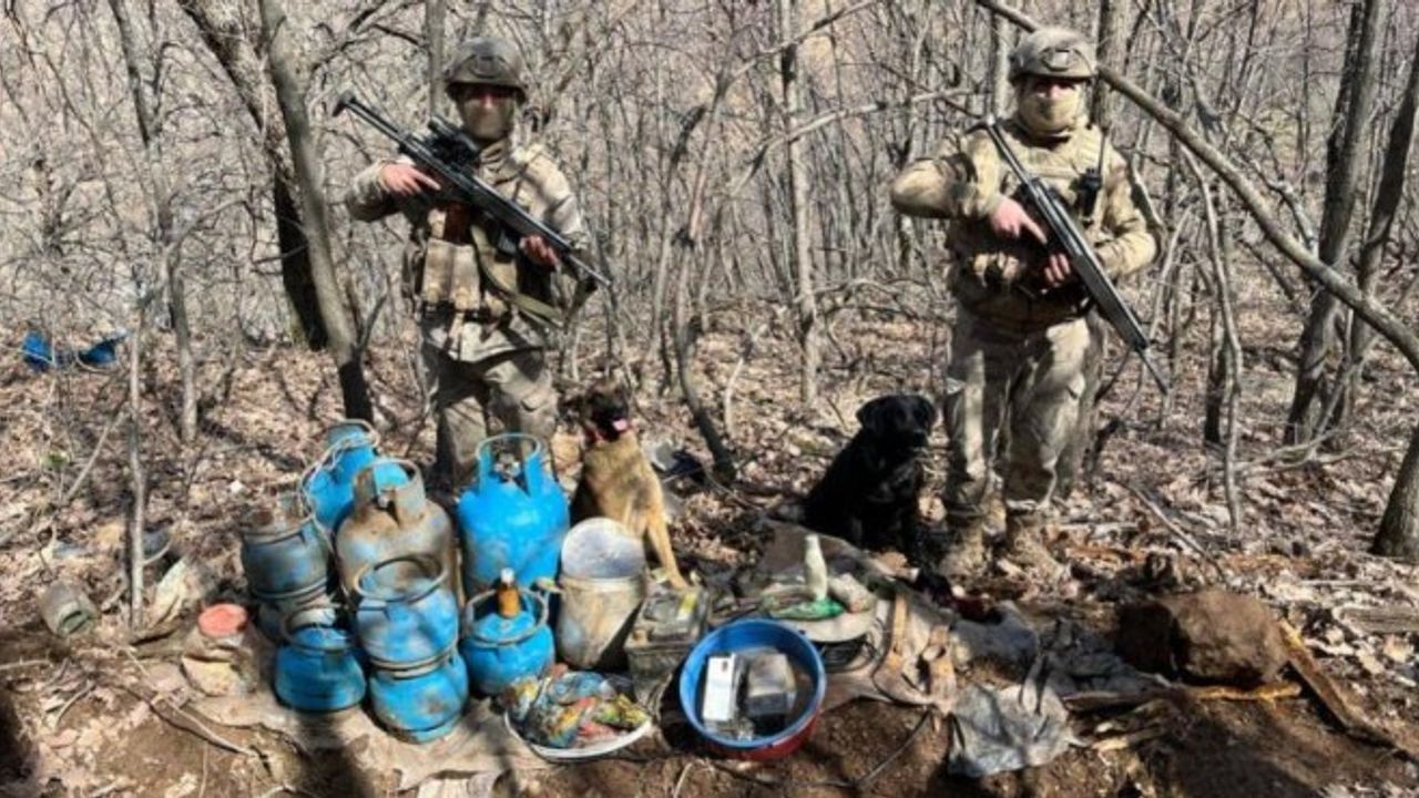 Ekiplerce bulunan sığınakta yapılan aramada, el yapımı patlayıcılarda kullanılmak üzere hazırlanmış pil blokları, 3 kilogram amonyum nitrat, 9 tüp, akü, 25 metre elektrik kablosu ve muhtelif yaşam malzemesi ele geçirildi.