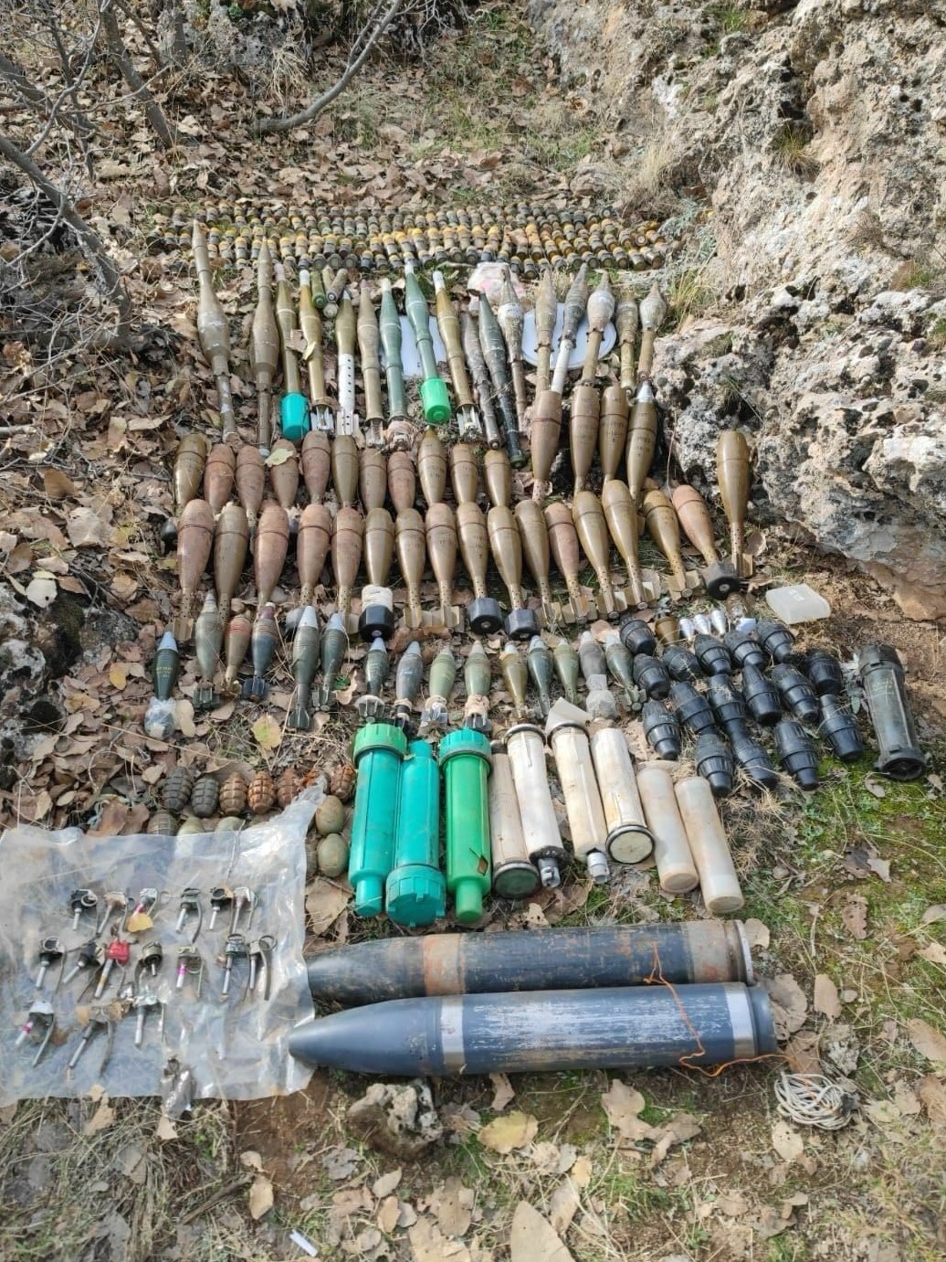 Bu kapsamda, Pençe-Kilit Operasyonu bölgesinde gerçekleştirilen arama-tarama faaliyetlerinde teröristlere ait çok sayıda mühimmat ele geçirildiği bildirildi. (AA)
