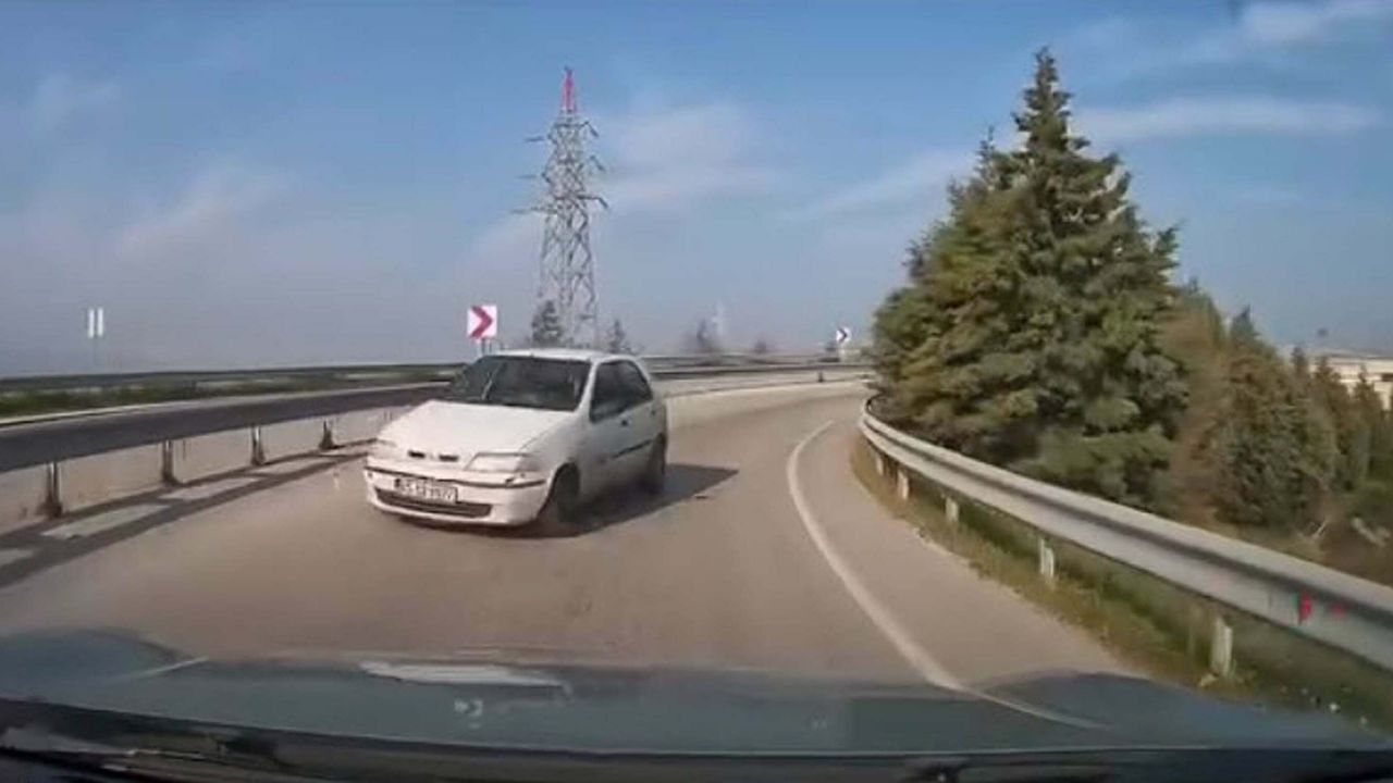 Olay, 17 Mart’ta saat 09.30 sıralarında Muradiye istikametindeki üst geçitte meydana geldi. 45 SA 8527 plakalı otomobil, üst geçide çıkışta ters yöne girerek Menemen’den üniversite yönüne giden başka bir otomobille karşı karşıya geldi. Sürücülerin manevra yapmasıyla olası bir kaza önlendi. O anlar araç kamerasına yansıdı.
