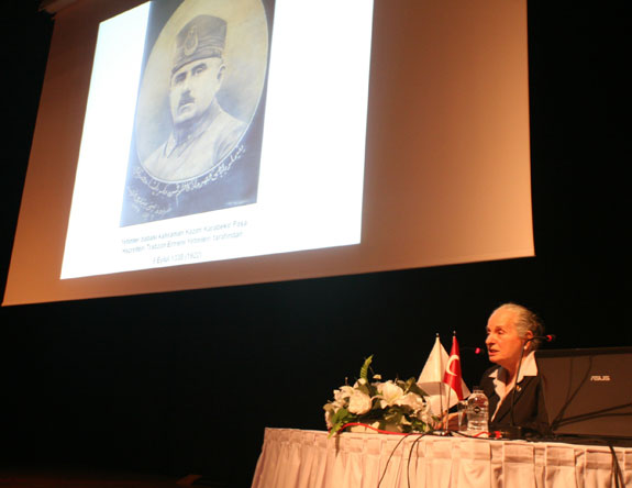 Timsal Karabekir, kendisini dinlemek için 600 kişilik salonu tıklım tıklım dolduran gençlere Milli Mücadele'nin ne şartlarda kazanıldığını anlattı. Karabekir, Avrupa'da en son Fransa'da gündeme gelen sözde Ermeni soykırımının inkarını suç sayma girişimlerine, Ermeni diasporasının bu yöndeki girişimlerine tarihi belgeler ve babasının anılarıyla sert yanıt verdi. Trabzon'daki yetimhanede kalan Ermeni çocuklarla gençlerin babasına sunduğu teşekkür yazısını gösteren Timsal Karabekir, 'Bu nasıl soykırım böyle' diye sordu? Büyük bir yalanla ve ucunda toprak kapma emeli bulunan karalama kampanyasıyla karşı karşıya olduğumuza dikkat çeken Karabekir şunları söyledi: 'Atamıza ve bizlere 'soykırım' suçunu yapıştırmak için ellerinden geleni yapıyorlar. Kimse ihanetten ise söz etmiyor, Doğu Anadolu'da Ermeniler tarafından katledilen Türkler'i kimse hatırlamıyor. Şimdiye kadar pek çok toplu Türk mezarlığı bulundu, açılmayı bekleyen 189 daha var ama bir tek bile toplu Ermeni mezarlığı yok. Ermeniler geçmişte olduğu gibi bugün de birileri tarafından maşa olarak kullanılıyor. Gerçekleri görmek istiyorlarsa sadece bizim arşivlerimize değil, ABD'nin arşivlerine de baksınlar. Eğer bakarlarsa Türkler'in, babamın tüm yaşananlara rağmen Ermeniler'e yaptıkları iyilikleri görürler. Ama buna cesaretleri yok.'