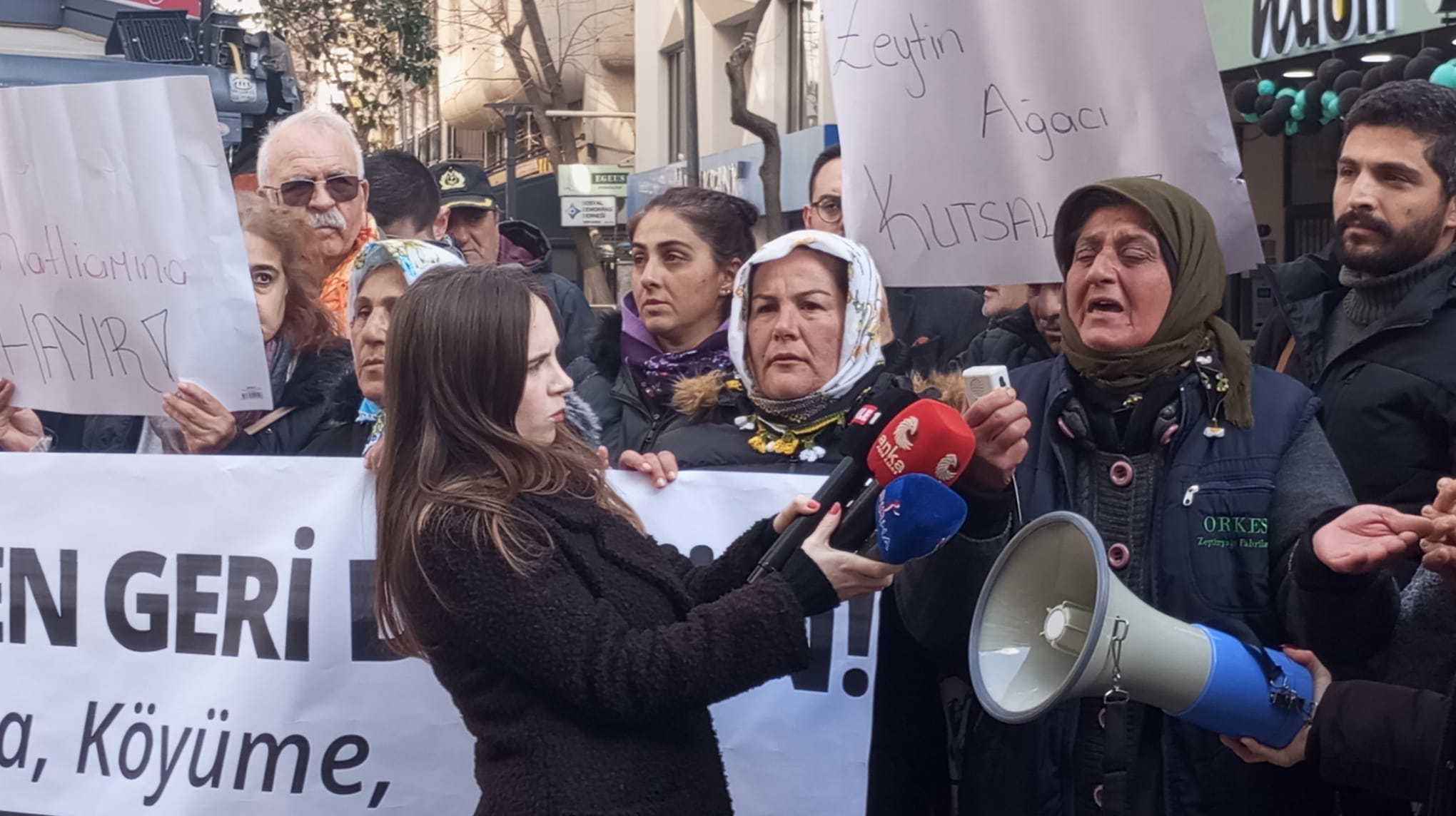 Çayırlı’dan Güler Yıldırım ,” Köyün altından geçecek yol aniden köyün üstüne döndü. Onlarca zeytin ağacımızı kesecekler. Ben burayı alırken Ziraat Bankasından kredi çektim, bu krediyi ödüyorum. Evime bu ağaçlarla bakıyorum. Ekmek teknemizi hayatta vermem. Bizi de öldürsünler öyle girsinler. Köyün altında 5-10 tane zeytinim var. Biz köylüyüz, fakiriz. Bize sahip çıkın. Köylü olmazsa hiçbir şey olmaz, biz üretemeyiz. Onca işimizi bıraktık geldik ağaçlarımıza sahip çıkmaya. Bize ne olur sahip çıkın” derken gözyaşlarına hakim olamadı.