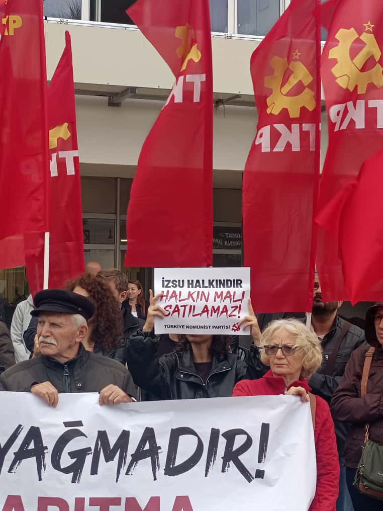 Türkiye Komünist Partisi, emekçi halkımızın alın teriyle kurulmuş tüm kamu varlıklarının yeniden devletleştirilmesini en acil görev olarak görmektedir. Plansızlık içinde ‘yönetilmeye’ çalışılan şehrimiz çok önemli bir çöp sorunu ile boğuşuyor ortaya çıkan halk sağlığı sorunları hepimizi endişelendiriyor, İzmir Büyükşehir Belediye Başkanı Cemil Tugay bu özelleştirme hamlesiyle yeni bir halk sağlığı sorunu yaratmaktadır. Görünen o ki Cemil Tugay’ın kendisi İzmir için bir halk sağlığı sorunu haline gelmiştir. Halkın kaynaklarını patronlara peşkeş çekemezsiniz, ensesindeyiz!