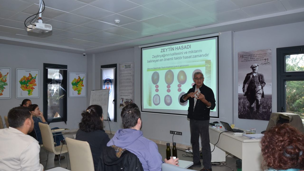 AYTB Duyusal Tadım Paneli Başkanı ve Kimya Mühendisi Yusuf Küçük’ün anlatımıyla gerçekleştirilen etkinlikte, zeytin ağacının tarihçesinden başlayarak kaliteli zeytinyağı üretiminin aşamaları ele alındı. İyi bir zeytinyağı elde etmenin ilk adımının doğru hasat zamanı olduğuna dikkat çeken Küçük, zeytinlerin olgunluk durumunun hem yağ miktarını hem de besin değerlerini doğrudan etkilediğini belirtti. Erken hasat zeytinlerden elde edilen yağların, insan sağlığı açısından değerli bileşenleri daha fazla içerdiğini ifade eden Küçük, hasat sonrası zeytinlerin bekletilmeden işlenmesinin önemini de vurguladı.