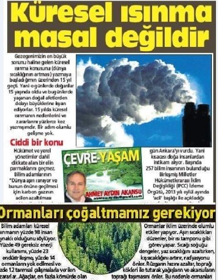 Peki bu yakınmalardan 3 milyon 750 bin kişinin haberi var mı? Yok. Neden?. Gazetelerin okunma, TV haberlerinin izlenme oranlarını ortada. Köşe yazarları okunuyor mu? 200-300 kişiyi geçmez. Kitap okunuyor mu? Yanıtı siz verin. Peki 3 milyon 750 bin kişiye nasıl ulaşıp küresel ısınmanın durdurulmasını anlatacağız. İşte önerim.