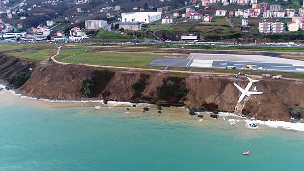 Ankara-Trabzon seferini yapan Pegasus Havayolları'na ait 'PC8622' sefer sayılı Boeing 737-800 tipi yolcu uçağı, dün saat 23.30 sıralarında Trabzon Havalimanı'na iniş yaptığı sırada pist başında manevra yaparken, henüz belirlenemeyen nedenle kontrolden çıktı, pistin kuzey yönünde deniz tarafına yöneldi. 162 yolcu ile mürettebatın tahliye edildiği uçak, yamaca asılı kaldı. Trabzon Havalimanı, hava trafiğine kapatılırken, uçaklar da Erzurum, Erzincan, Ordu-Giresun ve Samsun havalimanlarına yönlendirildi.