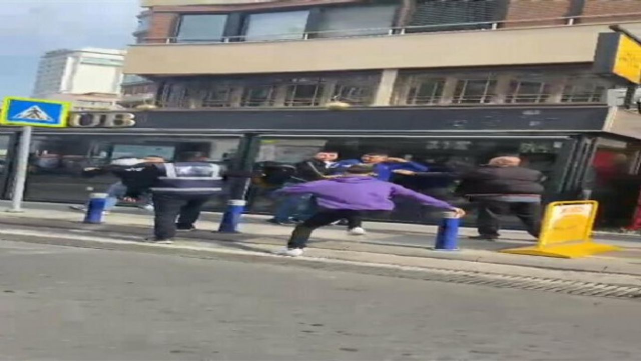 Öte yandan, kavga anları o esnada yoldan geçen bir sürücünün cep telefonu kamerasına yansıdı. (DHA)
