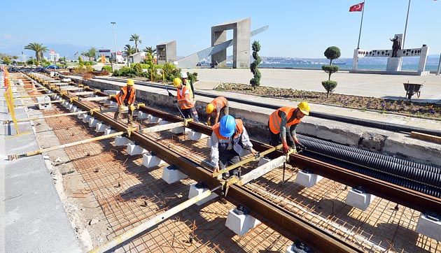 İzmir'in ana ulaşım omurgasını raylı sistem ile oluşturan İzmir Büyükşehir Belediyesi, yapım çalışmalarını hızla sürdürdüğü Konak ve Karşıyaka tramvaylarında büyük aşama kaydetti. Karşıyaka'da ray döşeme işlemlerinde Nikah Sarayı'nı geçen Büyükşehir Belediyesi, Konak Tramvayı'nda ise Vali Konağı'na ulaştı. Büyükşehir Belediyesi Konak Tramvayı sahil bölümünde gerçekleştireceği yeşil hat-çim kesit çalışmasını, Karşıyaka Tramvay hattının sahil bölümünün son 2 kilometresinde de uygulayacak.