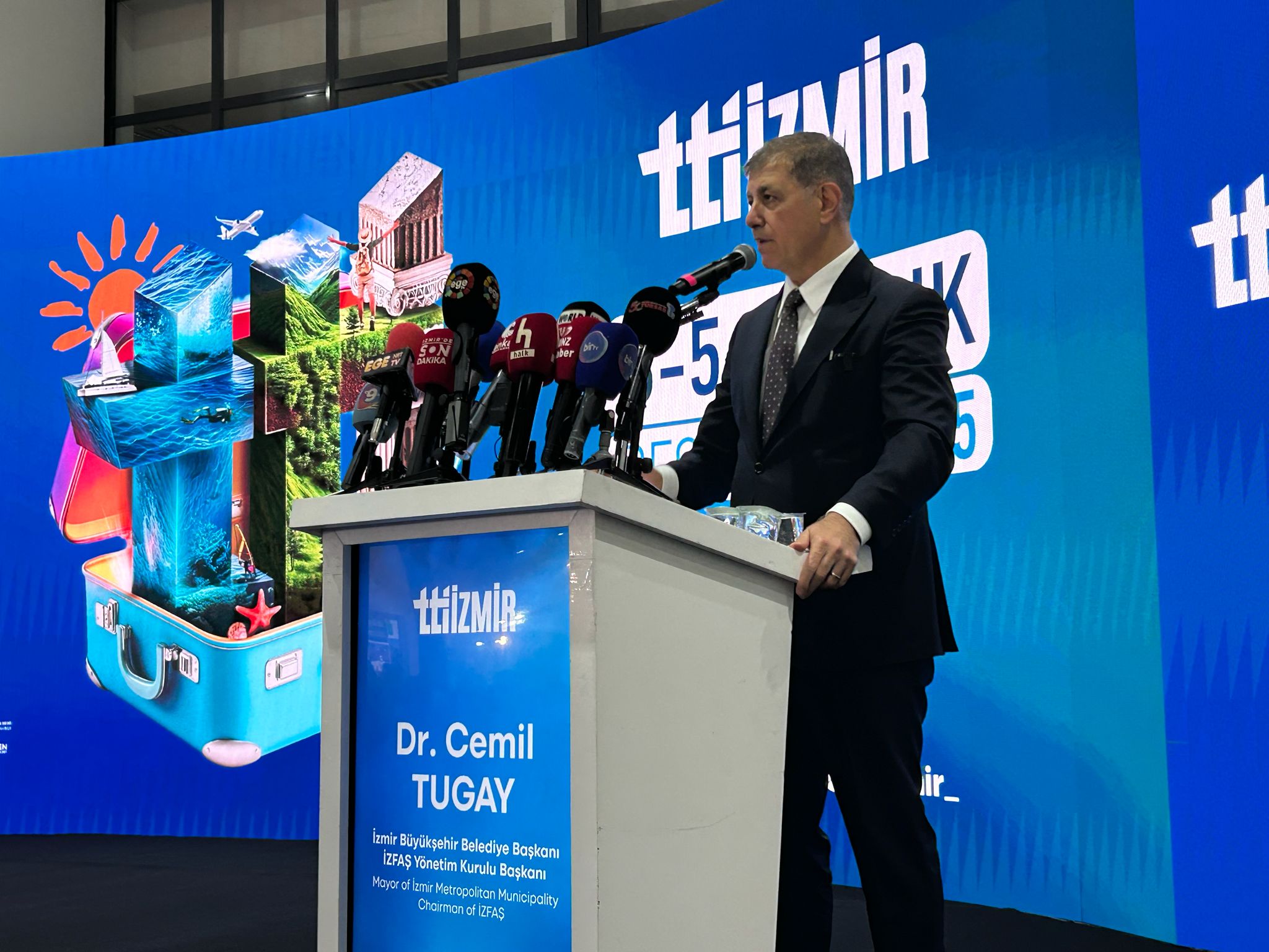 Açılış konuşmasını gerçekleştiren İzmir Büyükşehir Belediye Başkanı Cemil Tugay, “Ben şunu söylemek isterim. Dünya güzellilerle dolu. Biz artık dünyanın her tarafında keşfedilmeyi bekleyen yerler olduğunu biliyoruz. Afrika geleceğin parlayan yıldızı. Orta Asya ve Uzak Asya ilgi odağı. Dünyanın her köşesi yakın zamanda daha popüler olmaya hazır. Bizler bulunduğumuz bölgenin önemli olduğunun farkındayız. Sadece İzmir 8 bin 500 yıllık kültür üzerinde yaşan insanların şehri. Anadolu 12 bin yıllık medeniyetlere ev sahipliği yapıyor. Geçmişten bugüne insanlar hem Anadolu’da hem de dünyanın başka yerlerinde güzel eserler yaptılar. Bin yıllar sonrasında bile onları görmek heyecan verici. Bir taraftan da yarattığımız kirlilik ve çevre sorunları, kaynakların tüketilmesi, iklimin krize dönüşmesi hepimize dünyanı koruma sorumluluğu getiriyor. Bu güzel dünyanın keyfini sürmeliyiz. Bunun için turizmi canlı tutmalıyız. Gelecekte de güzellikleri korumak için her birimize düşen sorumluluklar var. Bu yıl 54 ülke ve ülkemizden 30 şehirden turizmciler bir araya geldi. 242’si yerli 139’u yabancı olmak üzere 381 katılımcıyı konuk ediyoruz. Geçen seneye göre 2 kat katılım var. Şehrimizde turizmin gelişmesi için çok çabamız var. Kültürel değerlerimizi korumak ve geliştirmek tüm dünyanın onları görmesi için çalışmaya devam edeceğiz. Turizm artık sadece gitmek görmek, deniz kum güneş değil. Bazen sağlık, bazen kültür gibi özel başlıklarda insanlar seyahat etmek istiyor. Deneyim ve eğitim içerikli geziler de çokça yapılıyor. Bu dönüşüm yatırımcıları da geliştiriyor. Turizm artık uzun vadeli yatırım oldu. İzmir’in tam merkezde yer alacak gücü var. Bu fuara daha fazla sahip çıkmak için çalışacağız. 2026’da İEF’in 95’sini düzenleyeceğiz. İzmir sağlık turizminde adım adım ilerleyen bir şehir. Ben burada İzmir’in daha fazla reklamını yapmayacağım. Stantlarda arkadaşlarımız gösterecektir. Buraya gelen ülkelerin hepsi bizim için çok değerli. Bosna Hersek çok güzel bir ülke. Kıbrıs bizim bir parçamız. İlişkilerimizin artarak gelişeceğine inanıyorum” dedi.