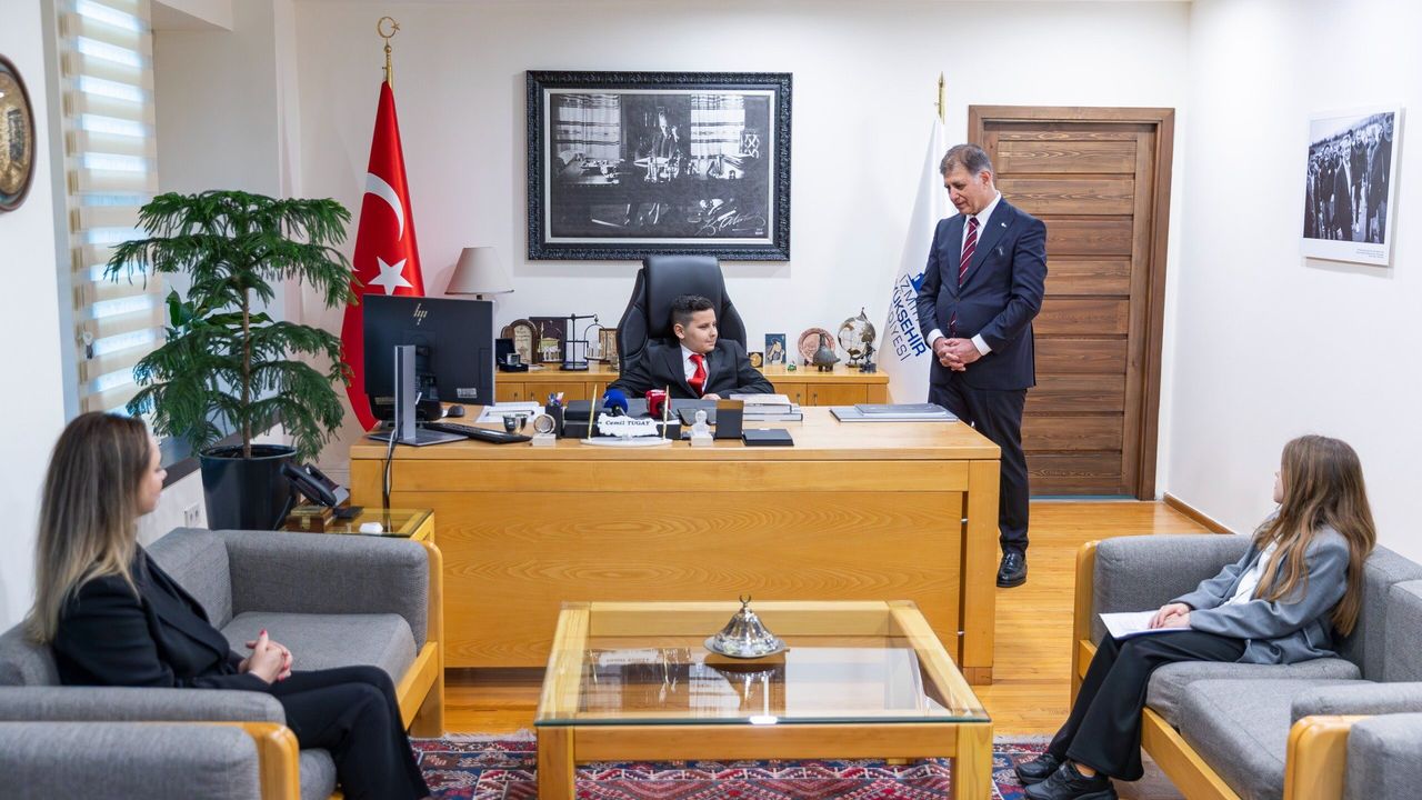 Başkan Cemil Tugay, daha sonra koltuğunu 4. sınıf öğrencisi Aras İpek’e devretti. İpek, “Bu bayram çocuklara armağan edilmiş bir bayram. Mustafa Kemal Atatürk bu bayramı çocuklara bıraktı; çünkü çocuklar yarının geleceği. Bu yüzden çocuklara sahip çıkmalıyız. Okul saldırılarında çocukların ölmemesini sağlamalıyız” dedi.