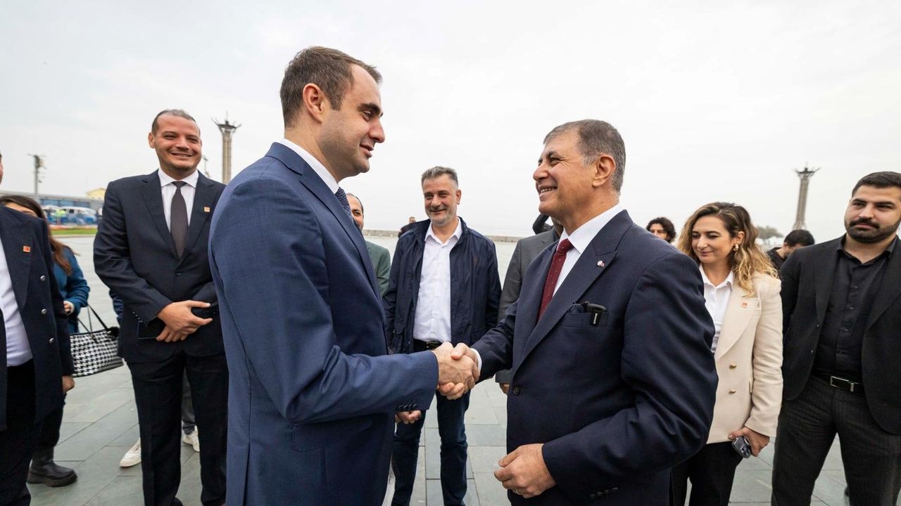 Berivan KAYA/EGEDESONSÖZ- İzmir Büyükşehir Belediye Başkanı Cemil Tugay, CHP İzmir’in yeni İl Başkanı Çağatay Güç’ü makamında ziyaret etti.