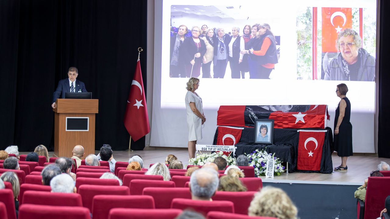 84 yaşında hayatını kaybeden Ege Üniversitesi Tıp Fakültesi Tıbbi Mikrobiyoloji Anabilim Dalı Emekli Öğretim Üyesi Prof. Dr. Emel Tümbay, Ege Üniversitesi Tıp Fakültesi Muhittin Erel Amfisi’nde düzenlenen törenle son yolculuğuna uğurlandı. Ege Üniversitesi Tıp Fakültesi mezunu olan İzmir Büyükşehir Belediye Başkanı Dr. Cemil Tugay da Tümbay’ın öğrencisi olarak törene katıldı. Kürsüye çıkarak hocası ile ilgili anılarını ve düşüncelerini aktaran Başkan Tugay, Tümbay’ın unutulmayacak benzersiz bir hoca ve bilim insanı olduğunu söyledi.