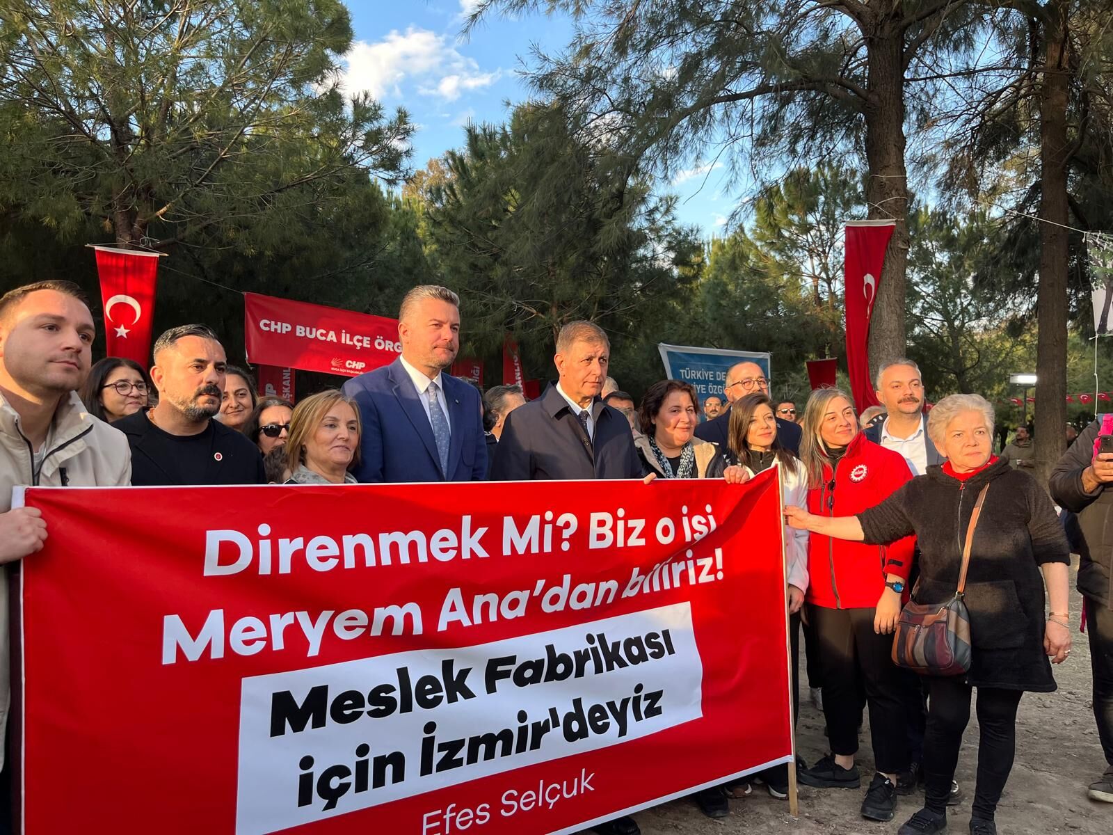 Buca Belediye Başkanı Görkem Duman ise, “Tarihi bir yapı, bir anda Vakıflar’a devredilmesi kabul edilemez. Burada yüz binlerce vatandaşımız meslek sahibi oldu, geleceğini şekillendirdi. İzBB Başkanımızla Buca’da üretici pazarını gezerken birçok kadın Meslek Fabrikasında meslek sahibi olarak orada ürünlerini sattılar, bunu gördük. Böylesine kıymetli bir okulun Vakıflar’a verilmesi çok üzücü. Umarız en yakın zamanda İzmirlilere geri döner” ifadelerini kullandı.