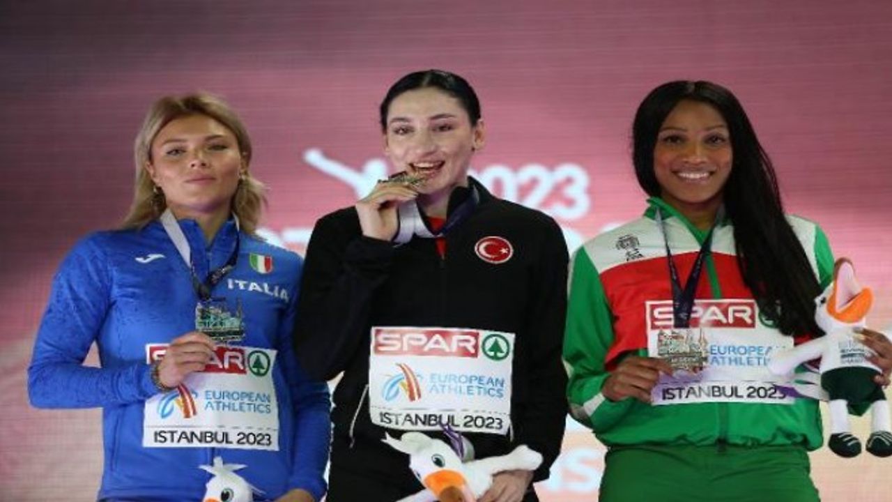 Türkiye'nin ev sahipliğinde İstanbul Ataköy Atletizm Salonu'nda düzenlenen Avrupa Salon Atletizm Şampiyonası'nda, milli sporcu Tuğba Danışmaz, 14.31 metrelik atlayışıyla kadınlar üç adım atlama branşında Türkiye rekoru kırarak Avrupa şampiyonu oldu. Milli sporcu, bugün yapılan madalya töreninde madalyasını aldı. Danışmaz'a madalyasını TAF Başkanı Fatih Çintimar verdi. Madalya töreninin ardından İstiklal Marşı okunurken, Tuğba Danışmaz göz yaşlarına hakim olamadı.