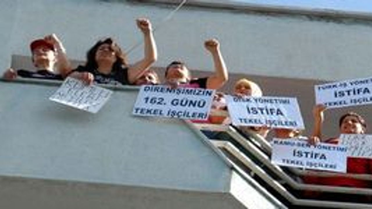 Bölge temsilciliğine saat 09.30'da gelen işçiler, sendika balkonundan ''Sendikalar göreve, genel greve'', ''Her yer Tekel, her yer direniş'', ''Kumlu istifa'' sloganları attı.