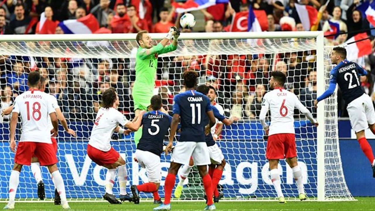 16. dakikada Fransa, gole yaklaştı. Griezmann, Coman'ın sol kanattan verdiği pasla ceza alanına girdi. Kaleciyle karşı karşıya kalan Griezmann'ın şutunda Mert Günok, topu çelmeyi başardı. Devam eden pozisyonda meşin yuvarlağı önünde bulan Sissoko'nun sert vuruşunda iyi yer tutan Mert, bir kurtarış daha yaparak topun ceza sahası dışına uzaklaşmasını sağladı.