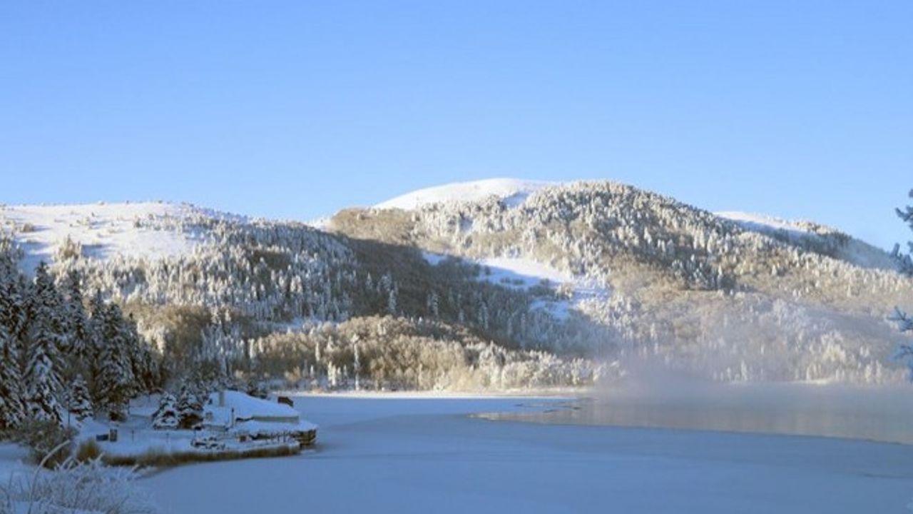 Hava sıcaklığının gece sıfırın altında 22,2 olduğu tabiat parkında bulunan ve çevresi 7 kilometre uzunluğunda olan gölün yüzeyi buz tuttu.