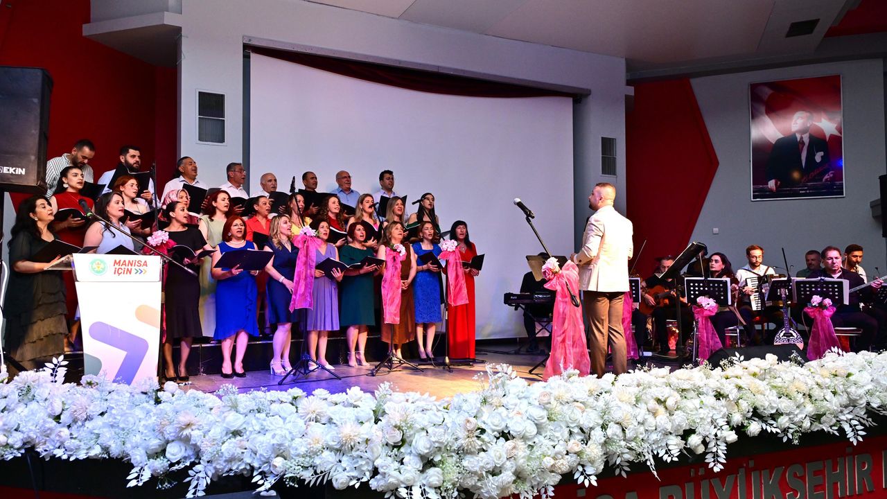 Şefliğini Hasan Başkaya’nın üstlendiği, tamamı gönüllülerden oluşan Manisa Büyükşehir Belediyesi Türk Halk Müziği Korosu, günümüzde de popülerliğini sürdüren türkülerden oluşan repertuvarla salondaki sanatseverlerden tam not aldı. Konserin sonunda uzun süre alkışlanan koro, izleyicinin coşkusuyla unutulmaz bir gece yaşattı. Şef Hasan Başkaya, koronun; polis, mühendis, öğretmen, sağlık çalışanı gibi farklı meslek gruplarından gelen amatörlerden oluştuğunu belirterek, “Hepsi türkü sevgisinde buluşuyor. Her Perşembe Atatürk Gençlik Merkezi’nde buluşarak çalışmalarımızı sürdürüyoruz. Bu yapının tek ön koşulu, türkü söylemek istemek. Bu konsere 3 ayda hazırlandık. Bu akşam da popüler türküleri hatta artık pop müzik gibi söylenen türküleri repertuvarımıza ekledik. Seyircinin tepkisi de muhteşemdi, güzel bir gece yaşadık” dedi.
