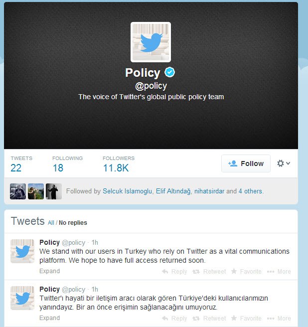 Twitter, şirketin Twitter adresinden yaptığı açıklamada, 'Türkiye'deki servisine girişin yeniden sağlanacağını umut ediyoruz' dendi.