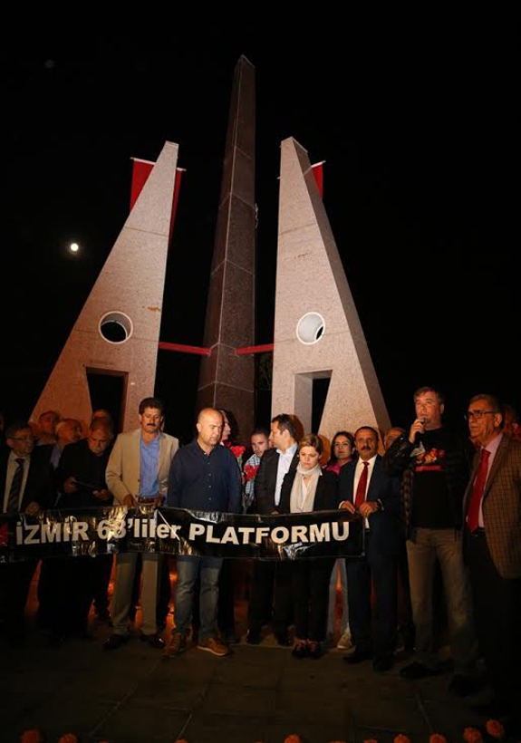 Anma törenine, üzerinde Deniz Gezmiş, Hüseyin İnan ve Yusuf Aslan'nın fotoğraflarının yer aldığı ve 'Unutmadık' yazılı tişört giyerek katılan Buca Belediye Başkanı Levent Piriştina, '3 fidan için, tüm devrim şehitleri için söylenecek o kadar çok şey var ama onların mücadelesinin en önemli kısmı, bize ışık tutan ve bugün anlamı daha da iyi anlaşılan bağımsızlık mücadelesidir. Onların bu mücadelesi yolumuza ışık tutacaktır' dedi. Anma töreninde konuşan CHP Genel Başkan Yardımcısı Selin Sayek Böke ise, 'Ülkeler gençlerini öldürmeden değişsin, bu dönüşüm bu anma ile başlasın istiyoruz' diye konuştu. Sözlerine 'Bir insan ismi son kez anıldığında ölür' diye başlayan İzmir Milletvekili adayı Murat Bakan 'Deniz Yusuf Hüseyin ölmediler. Onun için buradayız. Onlar tam bağımsız Türkiye için ölmediler. Türkiye'yi faşizme teslim etmemek için ölmediler. Bizlerde onların ideallerini kendi iç dünyamızda ve mücadelemizde yaşatacağız' dedi. Turgay Bozoğlu ise konuşmasında şunları söyledi; 'Oların mücadelesini burada gençler var, alanlarda binlerce insan var. Ben onların mücadelesinin ardından güzel günler göreceğimize inanıyorum'. Denizlerin özgürlük ve dayanışmanın öncüleri olduğunu söyleyen Ali Hıdır Uludağ, 'Onlar Türkiye'nin tam bağımsızlığının öncüleriydi. Onlar insan için vardı. Onlar idam sehpasına giderken de, 'Biz Türkiye'nin tam bağımsızlığı için insan için bedenimizi yok etmeye hazırız'' dediler ve ölüme gittiler' dedi. Tören, katılımcıların Üç Fidan Anıtı'na karanfil bırakması ile sona erdi.