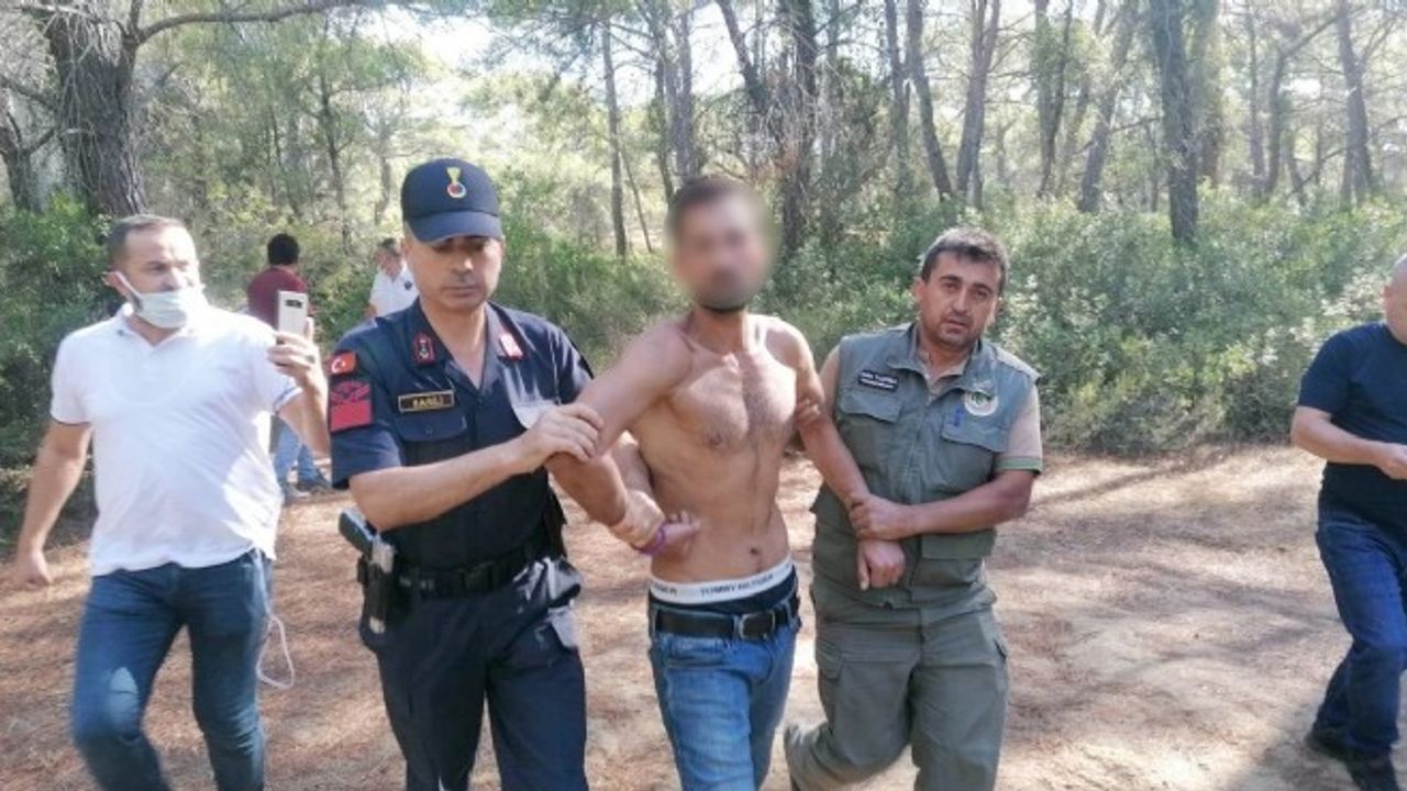 Orman içinde araştırma yapan orman görevlileri ve jandarma ekipleri, 4'üncü noktada yangın çıkarmaya çalışan kişiyi suçüstü yakaladı. Gözaltına alınan ve adının S.K. olduğu öğrenilen şüpheliye, jandarma aracına götürülürken çevredekiler de tepki gösterdi.