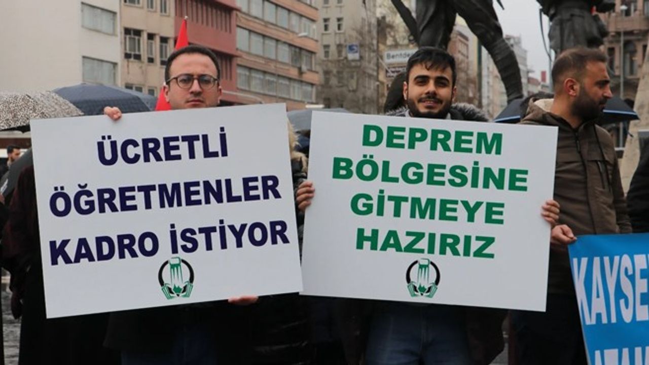 Ücretli Öğretmenler Dayanışma Derneği Başkanı Levent Atasoy, uzmanlaşmış öğretmenler olduklarını belirterek, 'Kadro için buradayız. Tecrübeliyiz. Tecrübemiz; kıdemimiz, bizler kıdemliyiz. Yol verin bizlere, deprem bölgesi de dahil felaketin yaralarını sarmaya gidelim. Yol verin bizlere, köy okullarına gidelim. Yol verin bizlere, tercih edilmeyen her okula gidelim. Çocuklarımızın yaralarını saralım. Bozkırları yeşertelim. Elimizi, gövdemizi taşın altına koyalım. Bizler devletimizin elinde altın gibiyiz. Görev verin, yükü omuzlarımıza alalım. Emektarız; bizler anayız, babayız. Görevden kaçmıyoruz. Buradayız; emektarlar burada, alanda. Ülkemizin her yerine gideriz. Yeter ki; bayrağımızın dalgalandığı yer olsun' dedi.