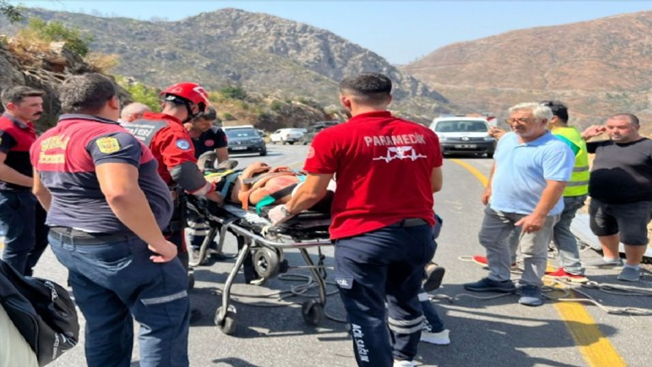 Marmaris İtfaiye Grup Amirliği ekipleri, yaralıları vatandaşlarında yardımıyla uçurumdan sedyeyle çıkardı.