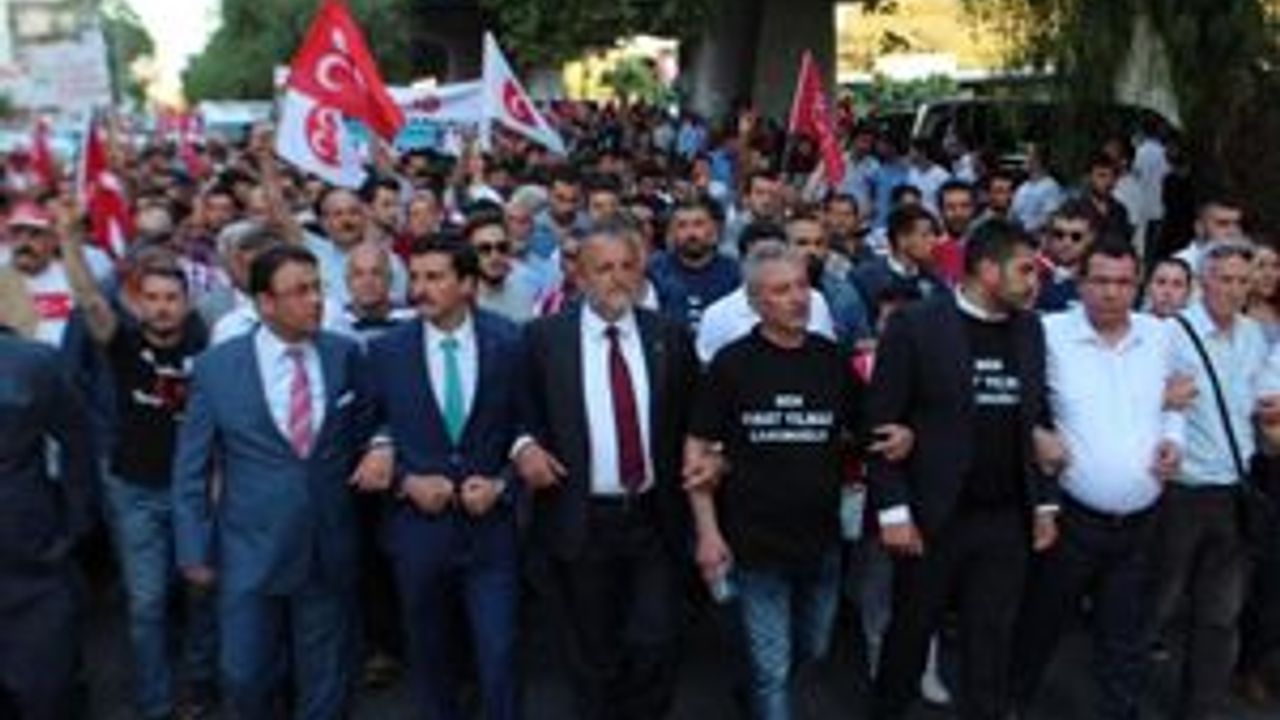 Daha sonra ellerinde Fırat Yılmaz Çakıroğlu'nun fotoğrafları, Türk devletlerinin bayrakları ve meşaleler taşıyan grup, 'Milliyetçi Türkiye', 'Ülkücü hareket engellenemez', 'Fırat'ım hakkını helal et bize' sloganı atarak yürüyüşe geçti. Yürüyüşe MHP Grup Başkanvekili Oktay Vural ve Genel Başkan Yardımcısı Ahmet Kenan Tanrıkulu ile MHP'li milletvekili adayları da katıldı. Bornova Cumhuriyet Meydanı'na gelen kalabalık grup saygı duruşunda bulunup İstiklal Marşı okudu. Ülkü Ocakları İzmir İl Başkanı Bilgehan Ağbaba burada bir konuşma yaptı. Bilgehan, 'Ülkemiz yeniden karanlık günlere itilmektedir. Çözüm süreci adı altındaki saçmalık yurdumuzu çözülmeye götürmektedir. Bu da yetmezmiş gibi üniversitelerde, bu süreçten yararlanan kıt akıllılar yetkili makamlarca korunmakta ülke bütünlüğüne kast eden zihniyetler fakültelerde cirit atmaktadır. Bu anlamlı gün bizim için başka bir önem arz etmektedir. Bundan 88 gün önce eğitim gördüğü üniversitede Fırat'ımız eli kanlı terör örgütünün uzantısı olan canilerce şehit edildi. 19 Mayıs Gençlik Bayramı bu sebeple farklı bir anlam taşımaktadır bizim için. Bu mana ile yürüyüşümüze bir Türk genci olan, Türk gibi yaşayan Fırat Yılmaz Çakıroğlu'nun ismini verdik. Olay üzerinden 88 gün geçmiş olmasına rağmen koltuklarında oturun üniversite rektörü, fakülte dekanı bizim ciğerimiz yanmakta sizlerin hiç yüzü kızarmıyor mu? Hangi yüzle insan içine çıkıyorsunuz, hala şereflice istifa etmek için ne bekliyorsunuz?' diye konuştu.(dha)
