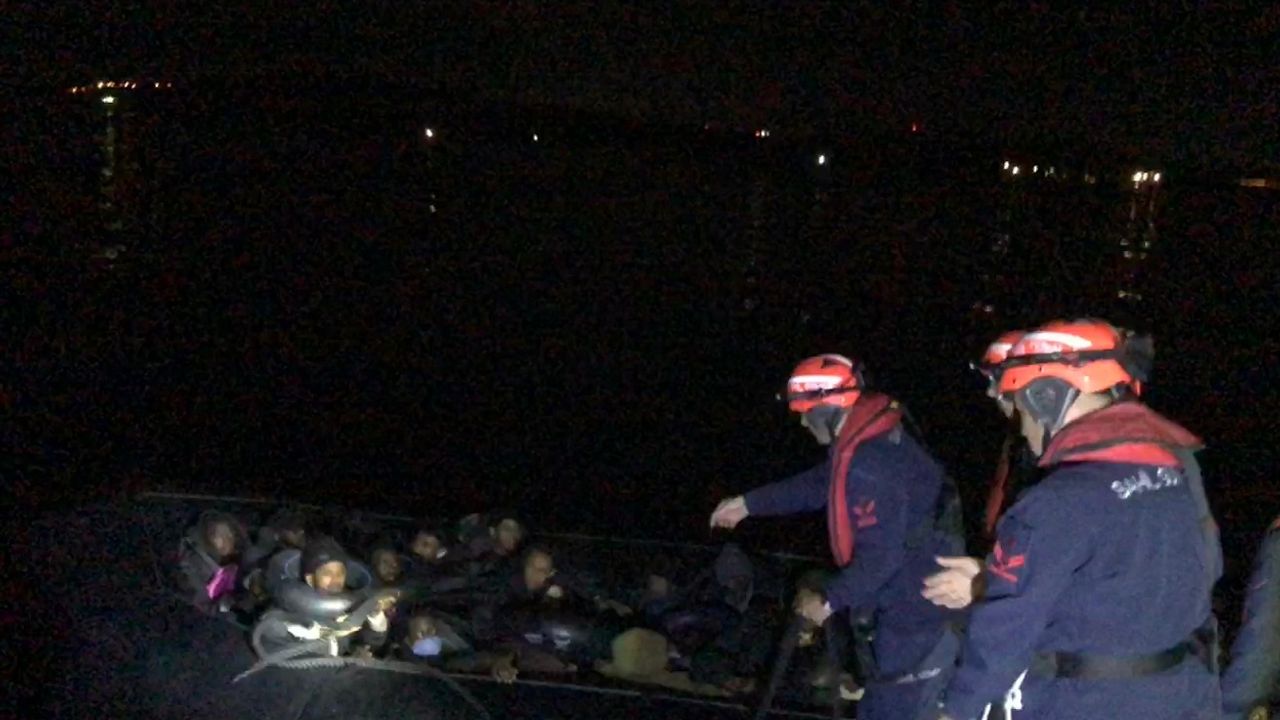Ekipler, lastik bottaki 5'i çocuk 48 düzensiz göçmeni yakaladı.