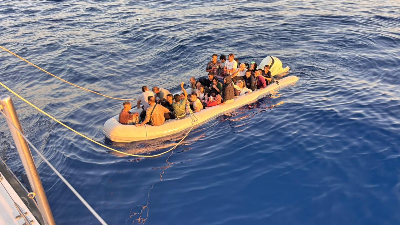 Ekipler, su alan lastik bot içerisindeki 13'ü çocuk 43 düzensiz göçmeni kurtardı.