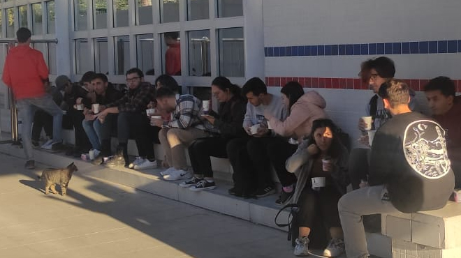 Yemek dağıtım araçlarının önünde dar alan ve yoğun talep sebebiyle oluşan kuyruk öğrencileri çileden çıkardı. Durum hakkında şikayetlerini dile getiren öğrenciler, 'Kalabalıksa oturacak yer bulamıyoruz. Yer tutabilmek için sıraya çok önceden giriyoruz. Onda da yerde oturup aracın gelmesini bekliyoruz. Zaten sıralarda geride kalmışsak kampüse elimizde yemeklerle geri giriyoruz. İlerleyen zamanlarda hava şartlarının daha da zorlaştığı dönemde bu oturduğumuz yerler zaten ıslanıp gidecek' ifadelerini kullandı.