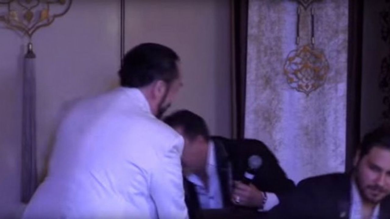 Latif Doğan, yanına gelen Adnan Oktar'ın elini öpmeye çalıştı. Ancak Oktar buna izin vermedi. (Posta)