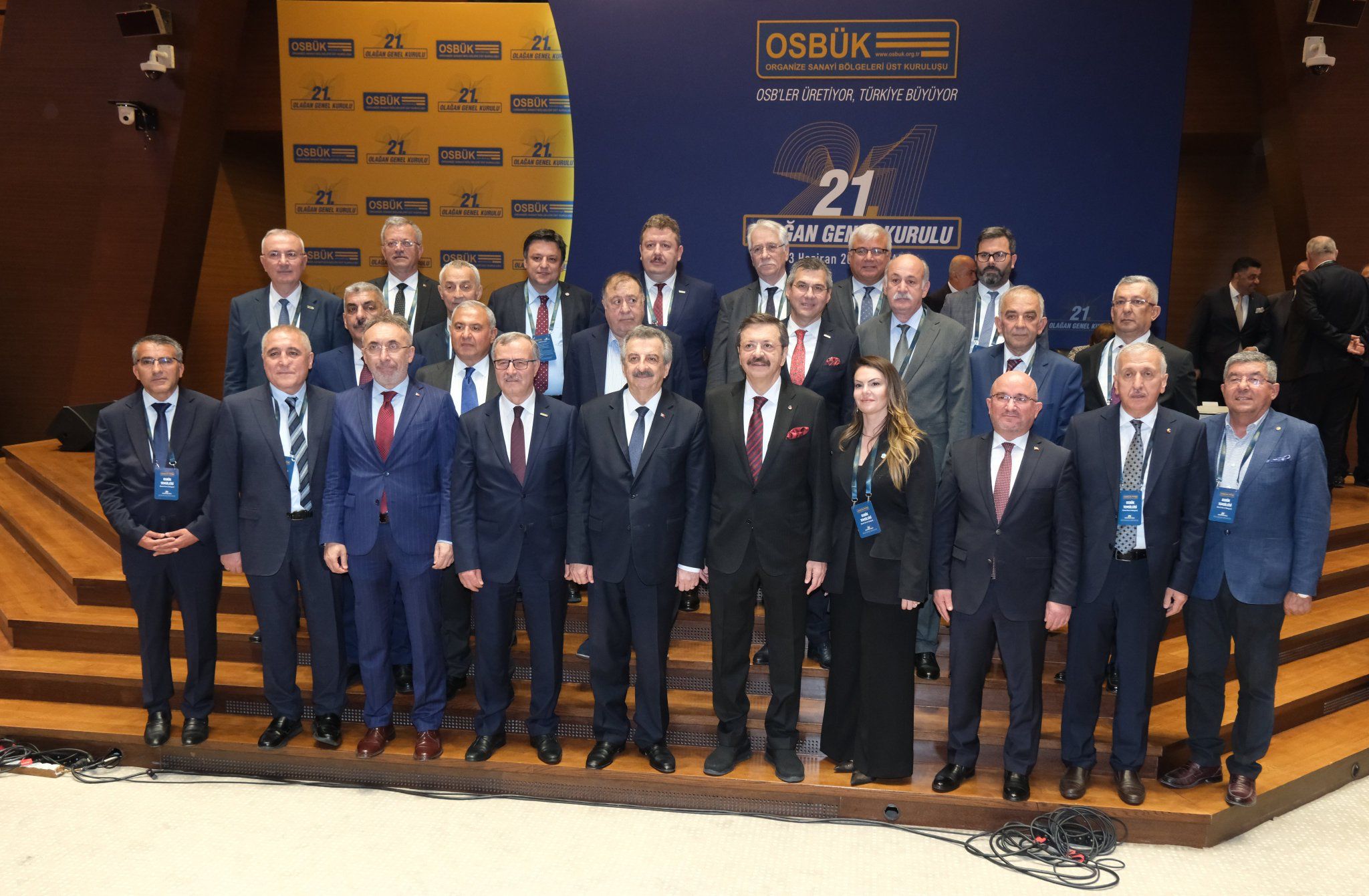 TOBB Genel Kurul salonunda gerçekleşen ve Nevşehir Ticaret ve Sanayi Odası Arif Parmaksız'ın Divan Başkanlığında yapılan OSBÜK 21. Olağan Genel Kurulu'na Konya Valisi Vahdettin Özkan, Sanayi ve Teknoloji Bakan Yardımcısı Hasan Büyükdede, TBMM Sanayi Komisyonu Başkanı Ziya Altunyaldız, TOBB Başkan Yardımcısı Salih Zeki Murzioğlu, TSE Başkanı Mahmut Sami Şahin'in yanı sıra OSB başkanları, oda ve borsa başkanları, OSBÜK Genel Kurul Delegeleri katıldı. Genel Kurul'un dilekler maddesinde söz alan Kınık Tarıma Dayalı İhtisas Organize Sanayi Bölgesi (TDİOSB) Başkanı Enver Olgunsoy, ülkemiz genelinde sayısı 35'e ulaşan tarıma dayalı OSB'lerinde OSBÜK Yönetiminde temsil edilmesi dileğinde bulunurken 6 Şubat Deprem felaketinin vurduğu 11 ilimizdeki OSB'lerin katılım paylarının yapılandırılması karar verildi.