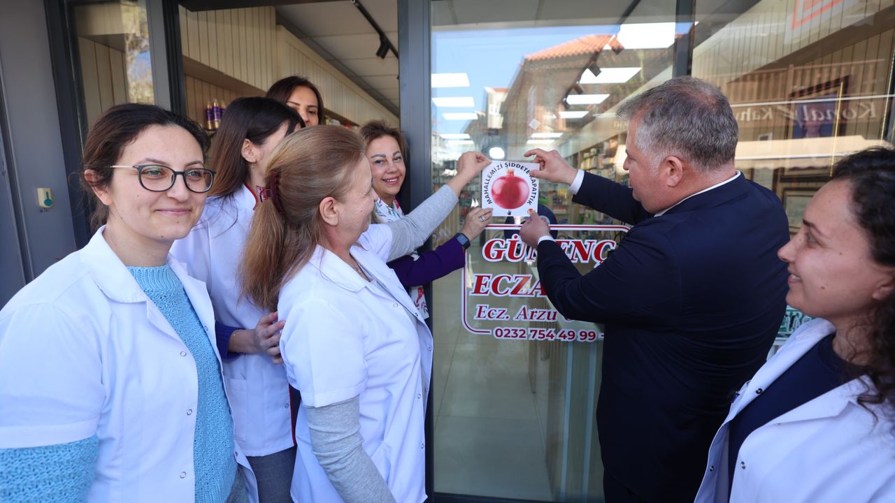 Belediye Başkanı Selçuk Balkan, muhtarlar, kadın dayanışma dernekleri ve esnafın katılımıyla gerçekleştirilen eğitimlerde, şiddete karşı ortak mücadele vurgulandı. “Mahallemizi Şiddete Kapattık” mesajıyla esnaf dükkanlarına afişler asılırken, toplumsal dayanışmanın önemine dikkat çekildi. İGC’nin Nar 2-Şiddete Karşı İletişim Projesi kapsamında Urla’da medyada şiddet dilinin dönüştürülmesi ve şiddete karşı farkındalık yaratılması amacıyla eğitimler ve esnaf buluşmaları düzenlendi. Muhtarların, esnafın ve belediyenin etkin rol oynamasının hedeflendiği etkinliklerde, toplumsal sorumluluk bilinci ön plana çıkarıldı. Esnaf ziyaretleri sırasında dükkanların camlarına “Mahallemizi Şiddete Kapattık” afişleri asılarak farkındalık çalışmaları yapıldı. Daha sonra Urla Belediye Meclis Salonu’nda muhtarlar ve sivil toplum temsilcileriyle bir araya gelen İzmir Gazeteciler Cemiyeti Başkanı Dilek Gappi ve Proje Koordinatörü Reyhan Şenay, şiddete karşı mücadele yöntemleri üzerine bir sunum gerçekleştirdi.