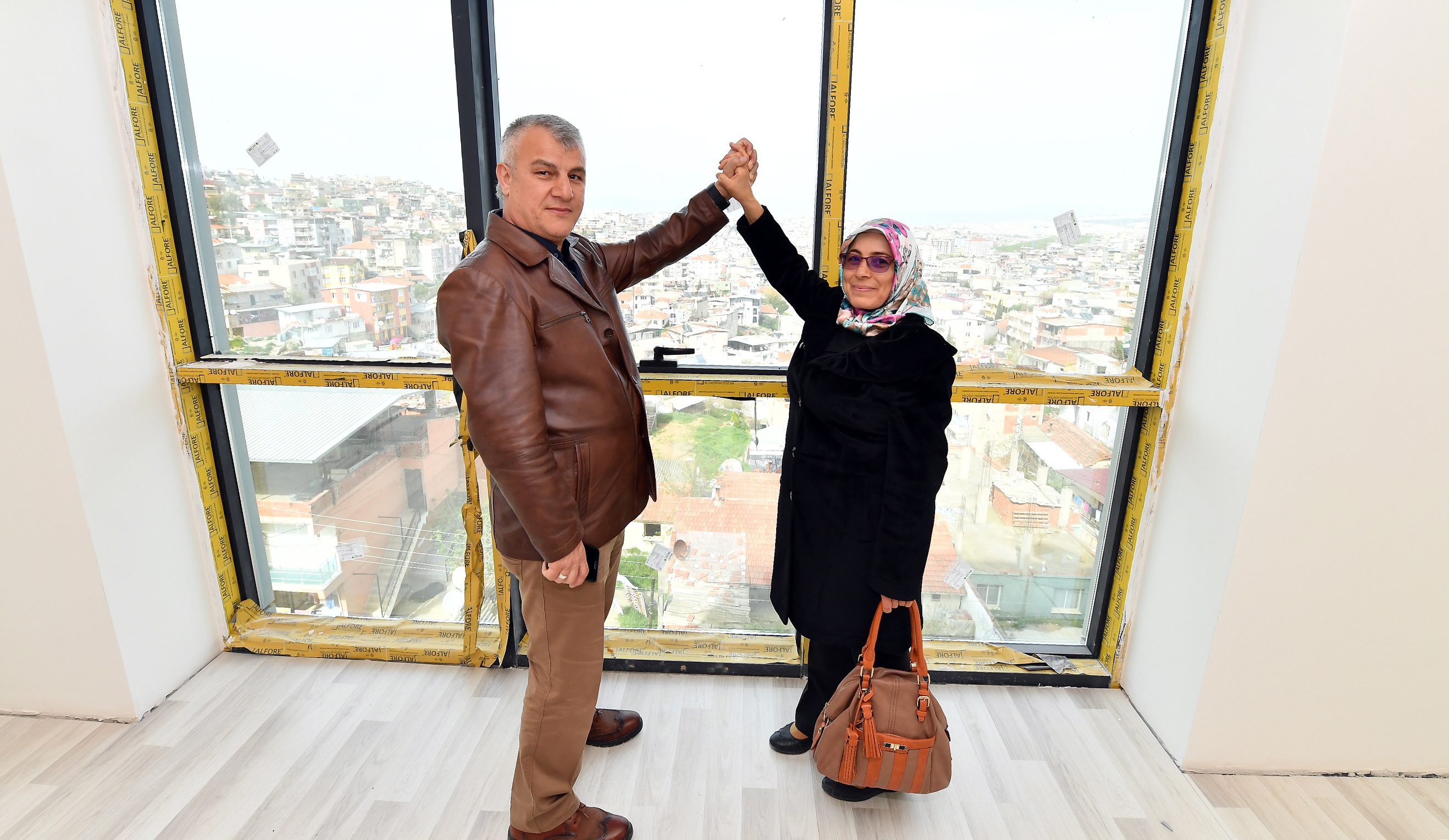 Yeni evlerini eşi Uğur Aydoğmuş ile birlikte gezen Sultan Aydoğmuş'un mutluluğu ise gözlerinden okunuyordu. Gezdiği her köşeye yerleştireceği eşyaların planlarını yapan Sultan Hanım, 'Eski evimiz gecekonduydu. Sobalıydı, çatımız akıyordu, merdivenlerimizden sular geliyordu. Yeni evimizde kalorifer, asansör her şey var. Telaşımız mutluluktan. Yapılan kentsel dönüşümden çok memnunum. İzmir Büyükşehir Belediye Başkanı Aziz Kocaoğlu'na özellikle teşekkür ediyorum' dedi. Yeni binalarını çok sevdiklerini kaydeden Sultan Aydoğmuş, 'Çevre düzenlemesi de olduğunda, çocuk alanları, parklar, yeşil alanlar olduğunda, daha da rahat edeceğiz ve mutlu ola cağız. İzmir'in her gecekondu bölgesine böyle kentsel dönüşümün girmesini diliyorum' şeklinde konuştu.
