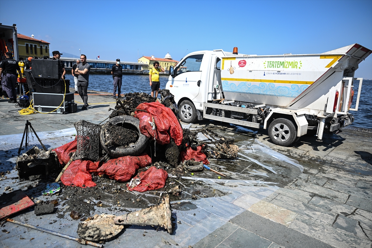 Çevre, Şehircilik ve İklim Değişikliği İl Müdürlüğü organizasyonuyla Cumhuriyet Meydanı önünde Sahil Güvenlik Komutanlığı ve İzmir Emniyet Müdürlüğü Deniz Limanı Şube Müdürlüğüne bağlı dalgıç ekipleri, dalış yaparak dip temizliği, İzmir Büyükşehir Belediyesi ekipleri de yüzey temizliği yaptı.