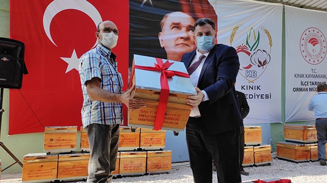 Törende konuşma yapan Kınık Belediye Başkanı Sadık Doğruer 'Cumhurbaşkanımız Recep Tayyip Erdoğan'ın Kınık ziyaretinde gündeme gelip Tarım Ve Orman Bakanımız Bekir Pakdemirli'nin ziyaretinin ardından hayata geçirilen proje ile bugün 111 üreticiye 5'er adet olmak üzere 555 adet polen tuzaklı Arı Kovanı dağıtacağız. Ben, bu projede emeği geçen başta Cumhurbaşkanımız Recep Tayyip Erdoğan ve Tarım ve Orman Bakanımız Bekir Pakdemirli olmak üzere emeği geçen herkese teşekkür eder arı kovanlarının üreticilerimizee hayırlı olmasını dilerim' dedi.