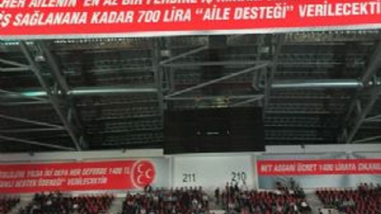 MHP'nin kilit vaadi ise işsizlikle mücadele konusunda oldu. 'Her ailenin en az bir ferdine iş imkanı sağlanacağı' MHP beyannamesinde yer aldı.
