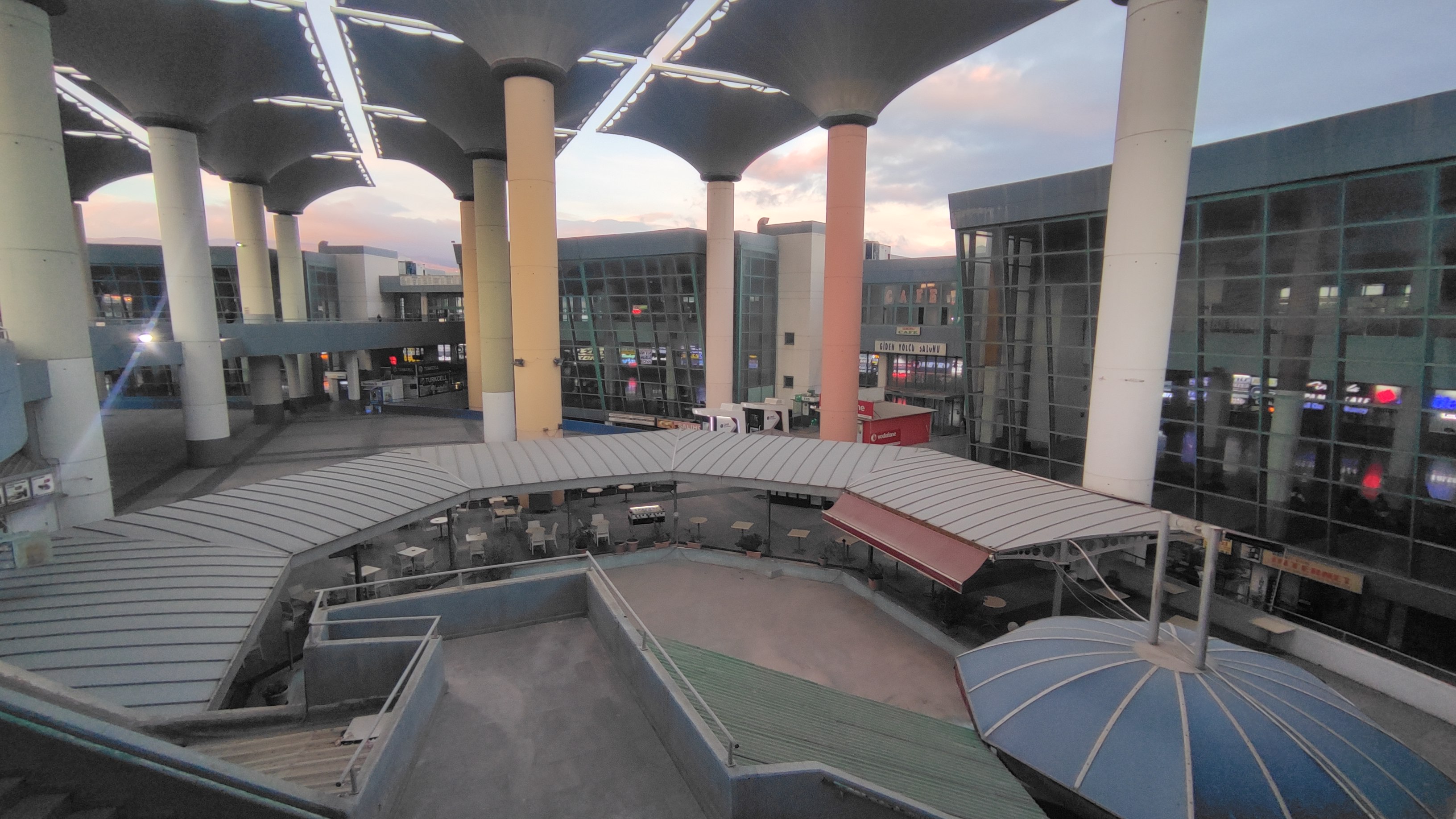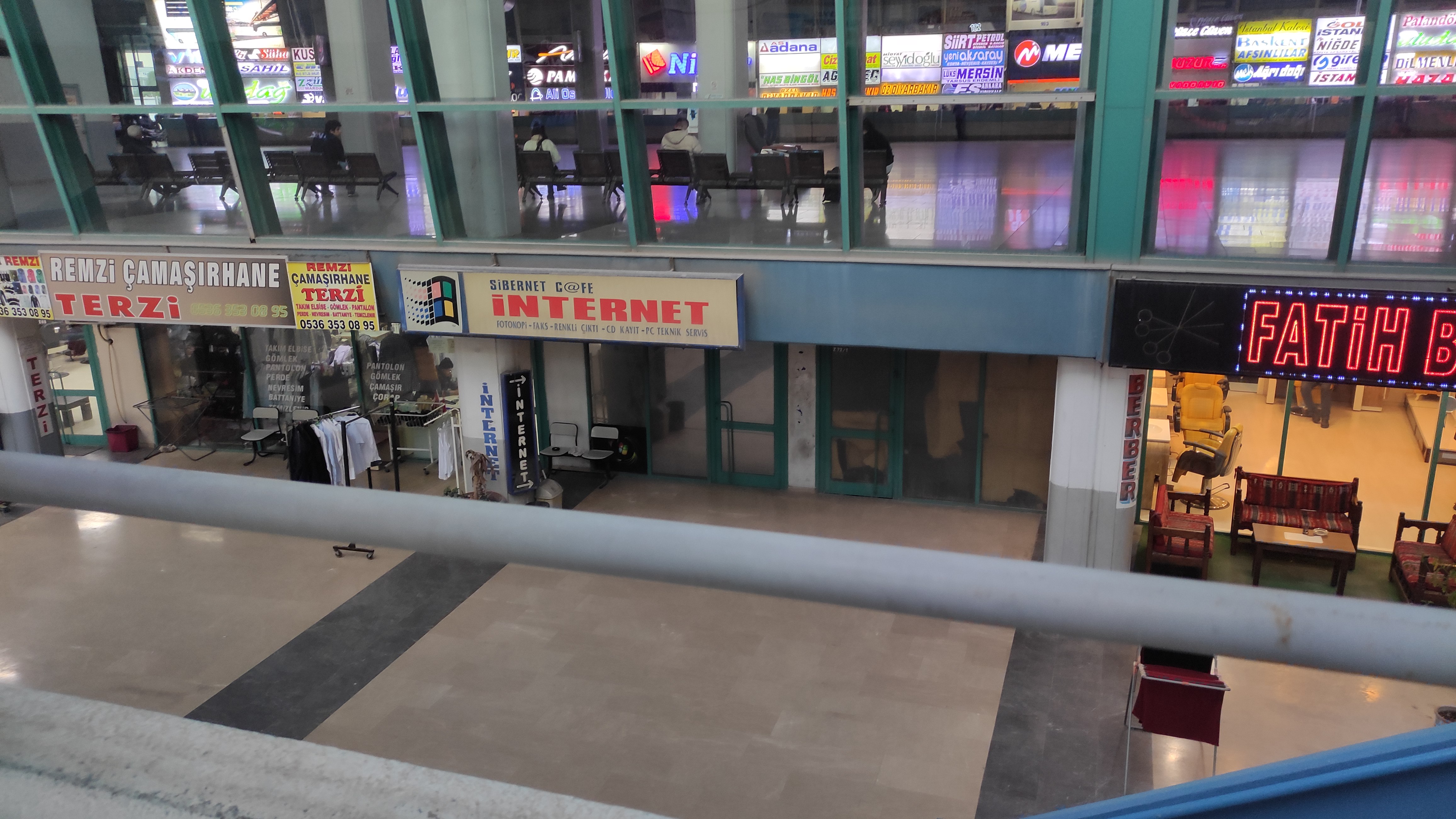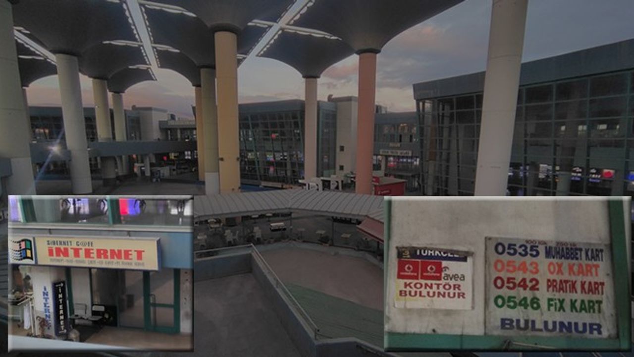 Otogarın en alt katında artık kapanmış olan Sibernet İnternet Kafe'nin tabelası bugün aktif olarak kullanılmayan Windows 95 logosuna sahip.