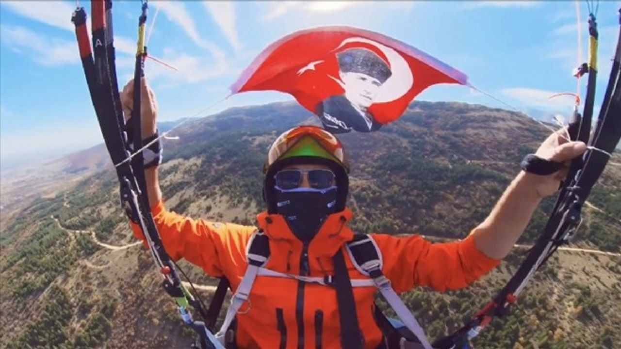Aksiyon kamerasıyla 15 dakikalık uçuşu görüntüleyen Ceylan, yaptığı açıklamada, her zaman Atatürk'ün izinde olduğunu belirterek, 'Onu her geçen dakika daha büyük özlem, sevgi, saygıyla anıyorum. Atamızın ve sonsuz yaşamlarına uğurladığımız tüm kahramanlarımızın ruhu şad olsun, onları asla unutmayacağız.' ifadesini kullandı. (AA)