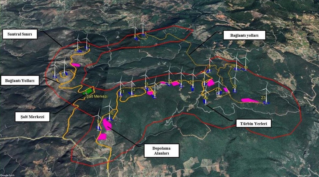Plan verilerine göre projede yer alan türbinlerden T14 numaralı türbin “Çamlık ve Çalılık Alan”, T16 ve T21 numaralı türbinler ise “Tarım Alanı” vasfında kalan bölgelerde konumlanıyor.