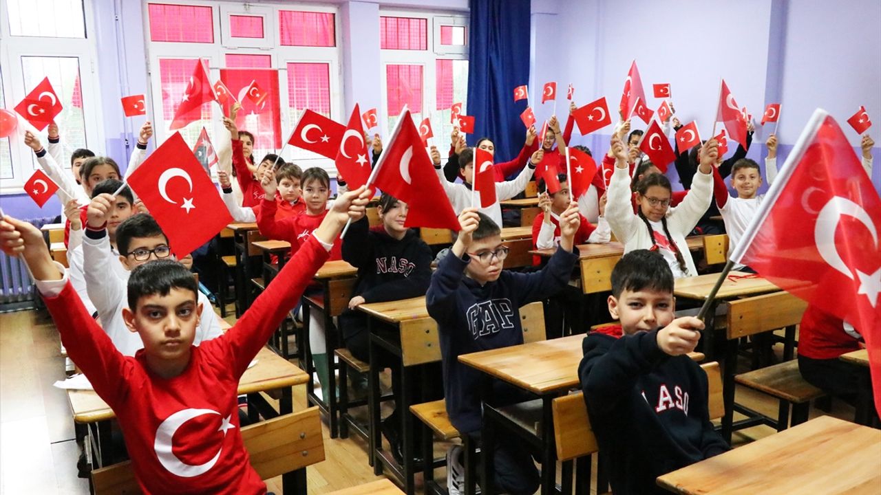 İstiklal Marşı'nın okunmasının ardından sınıflarına geçen öğrenciler, ilk dersi "Bayrak Sevgisi" temasıyla işledi.