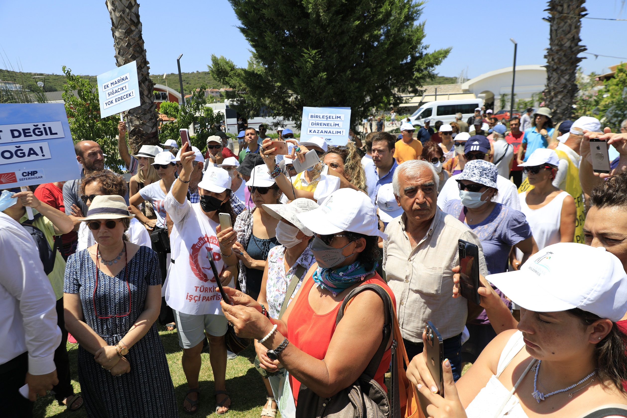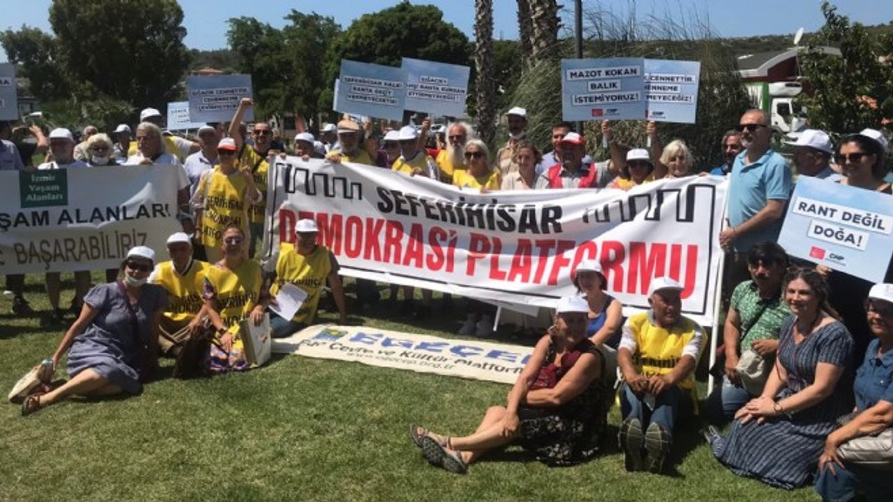 ÇED süreci kapsamında bugün yapılması planlanan 'halkın katılımı' toplantısı bölge halkının ve çevrecilerin engeline takıldı. Toplantının gerçekleştirileceği duyurulan kafenin önünde, Seferihisar Demokrasi Platformu, EGEÇEP ve İzmir Yaşam Alanları gibi çevre örgütlerinin çağrısıyla bir araya gelen vatandaşlar alkışlarla ıslıklarla toplantıyı yaptırmadı. Eyleme, Seferihisar Belediye Başkanı İsmail Yetişkin, CHP İzmir Milletvekilleri Tacettin Bayır ve Atilla Sertel katıldı. Toplantının yaptırılmadığına dair tutanak tutturuldu.