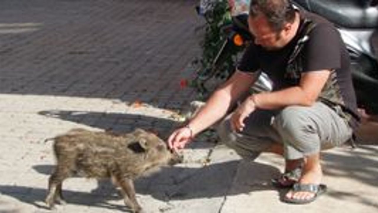Turizm işletmelerinde çalışan kovboy Mustafa bugünlerde 3,5 aylık yaban domuzu yavrusu ile dolaşıyor. Evi milli parka yakın olduğu için milli parktan gelmiş minik yavru. Bizim kovboy da onu sütle beslemiş. Günde 1 litre süt için domuz yavrusu da hiç ayrılmıyor bizim kovboyun yanından. Vatandaşlarda çok seviyor yavru domuzu. İzci, 'Benim dünyam bu. Böyle giyinmeyi ve dolaşmayı seviyorum. Doğayı, hayvanları çok seviyorum. Belde halkımda bana kovboyluğu yakıştırıyor. 2 ay önce evimin bahçesine gelen yavruyu her gün 1 litre süt içirerek besliyorum. Benden ayrılmıyor. Adını 'Apaçi' koydum. Birlikte dolaşıyoruz. Çocuklar kadar büyüklerde onu çok seviyorlar. Onu 2 kez doğal hayata bırakmama rağmen bir, iki gün sonra tekrar eve ulaştı. Ben nere gidersem peşimi bırakmıyor. Zararsız ve kendisine gösterilen ilgiyi anlıyor' dedi.