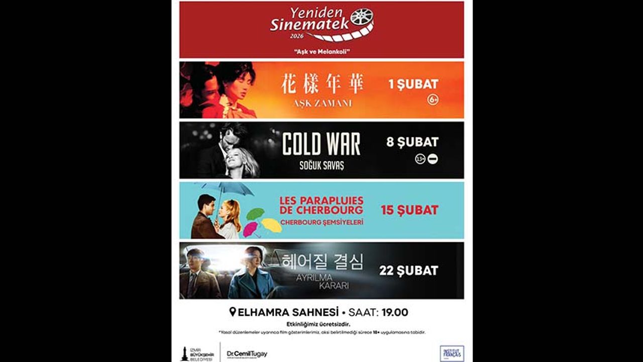 Yeniden Sinematek, şubat ayında “Aşk ve Melankoli” temasıyla sanatseverlerle buluşmaya hazırlanıyor. Farklı ülke sinemalarından dramdan müzikale uzanan geniş bir tür yelpazesinden filmlerin yer aldığı seçkide Institut Français iş birliğiyle yapılacak bir gösterim de yer alıyor. Ücretsiz gösterimler şubat ayı boyunca her pazar saat 19.00’da Elhamra Sahnesi’nde izleyici ile buluşacak.