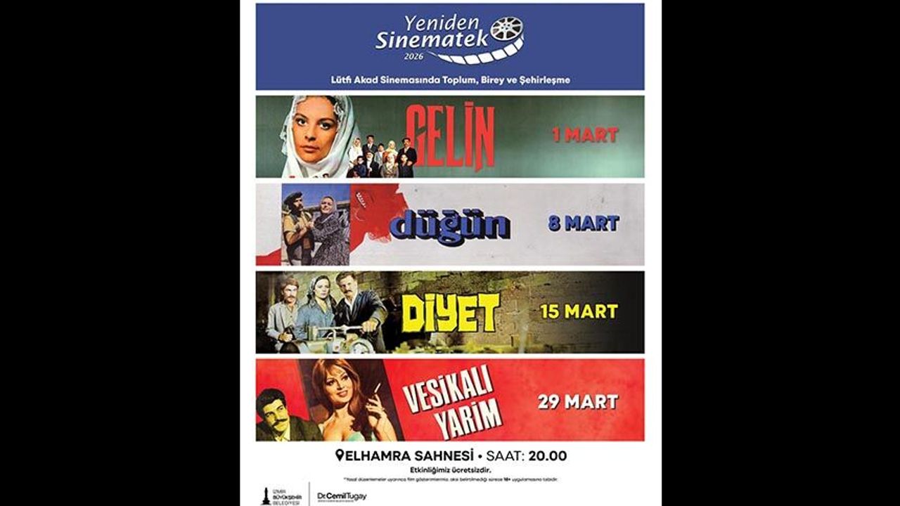 Yeniden Sinematek, mart ayında “Lütfi Ö. Akad Sinemasında Toplum, Birey ve Şehirleşme” temasıyla Elhamra Sahnesi’nde İzmirliler ile buluşmaya hazırlanıyor. Türk sinemasının usta yönetmenlerinden Lütfi Ömer Akad’ı vefatının 15. yılında anmaya vesile olacak seçkide, onun sinemasını oluşturan mihenk taşları sayılabilecek yapımlar yer alıyor. Program kapsamında usta yönetmenin “göç” üçlemesinin filmleri olan Gelin, Düğün ve Diyet’in yanı sıra Türk Sinemasının klasikleşmiş filmlerinden Vesikalı Yârim de beyaz perdeyle buluşacak. Köyden kente göçün toplum ve bireyler üzerinde yarattıklarına etkileyici bir üslupla yaklaşan yönetmen, hem dönemin toplumsal yapısı hem de aile yapısı hakkında birçok gerçekliği gözler önüne seriyor.