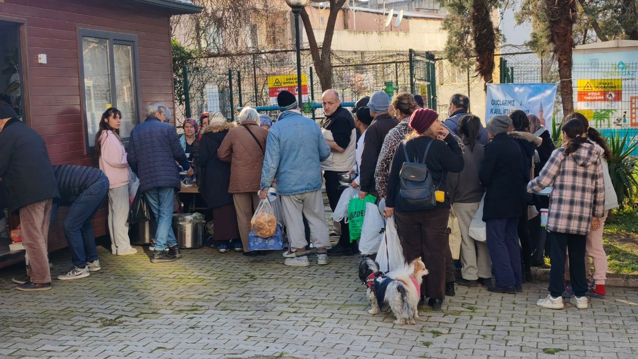 Ellerinde tencereler, plastik kaplar ve poşetlerle sessizce sıraya giren yurttaşlar, dağıtılan kuru fasulye ve pilavla akşam sofralarını kurabilmenin umudunu taşıdı.